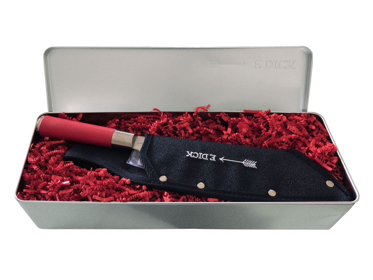 Dick RED SPIRIT CUOCO AJAX CM.20+FODERO BOX MET. 8172226RED SPIRIT - Cuoco AJAX + Fodero + Box metalloL.LAMA: cm 20LAMA: affilata in modo estremamente sottile (il filo è lucidato)MANICO: tondo
