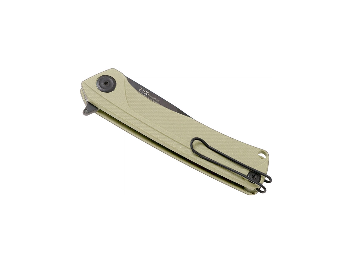 Da apprezzare è il flipper di apertura dotato di ANV lumi dot, la lama Drop Point in acciaio svedese Sleipner, il robusto alloggiamento della lama con impugnatura in Nylon o G10 e la sicurezza del meccanismo di blocco Liner Lock. Il tutto è completato da una profonda clip reversibile, grazie alla quale destrimani e mancini potranno portare comodamente lo Z100.