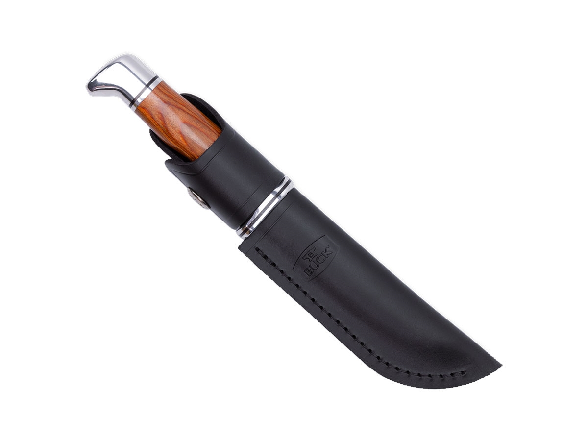 Il coltello 117 Brahma è un coltello multiuso per la caccia e l\'outdoor. Noto come mini 119 Special, lo stile classico deriva dalle prime lame fisse di Buck. Usa la punta della lama a clip per lavori dettagliati o la pancia della lama per un uso più robusto. Questo coltello presenta una guardia e un pomolo tradizionali. Include una guaina nera in vera pelle con passante per cintura.