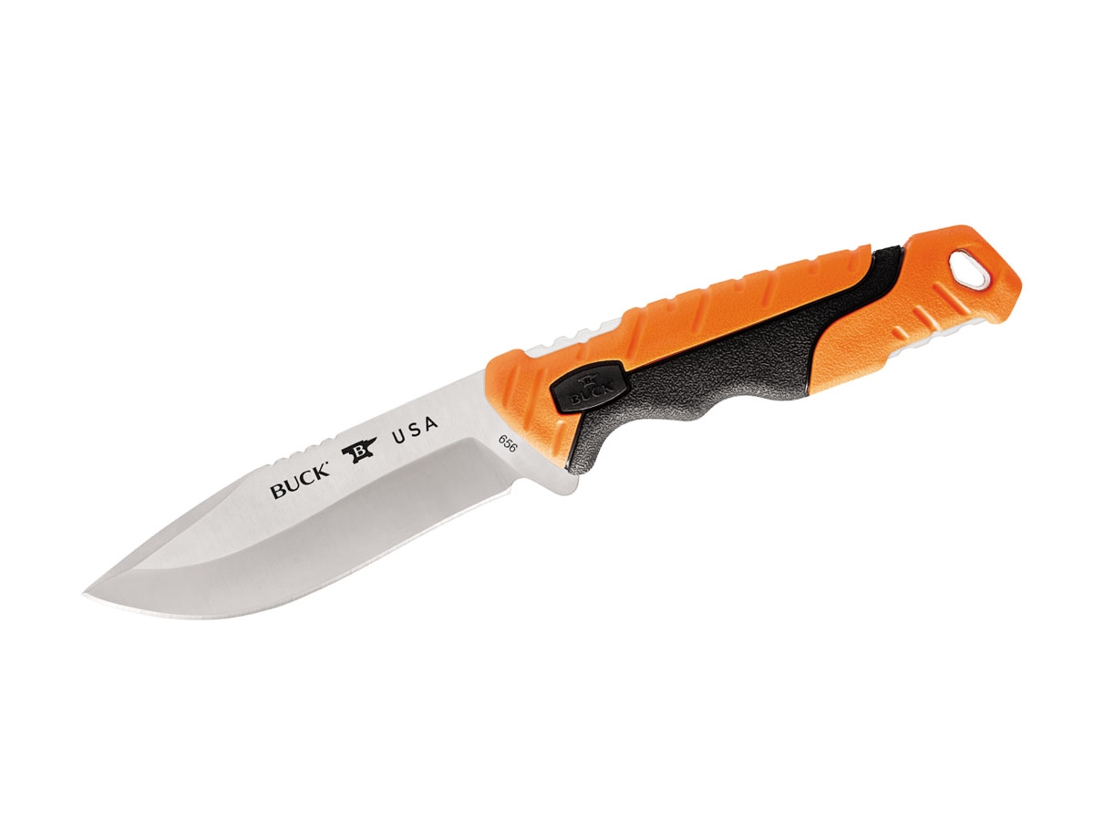 Il coltello da caccia a lama fissa 656 Pursuit Pro Large combina un'impugnatura sicura e altamente visibile con l'acciaio S35VN di fascia alta, che offre la stessa ritenzione del filo dell'acciaio S30V ma le sue proprietà gli consentono di riaffilarsi più facilmente, rendendolo un'ottima scelta per scuoiare più animali. Il design a codolo pieno e il manico sagomato rendono il coltello durevole e confortevole, riducendo l'affaticamento della mano durante il lavoro. Questo coltello è fornito di un fodero robusto in nylon con passante per cintura. Prodotto negli Stati Uniti e supportato dalla famosa garanzia Forever di Buck, il coltello Pursuit a lama fissa copre tutte le esigenze, dal principiante al cacciatore serio.