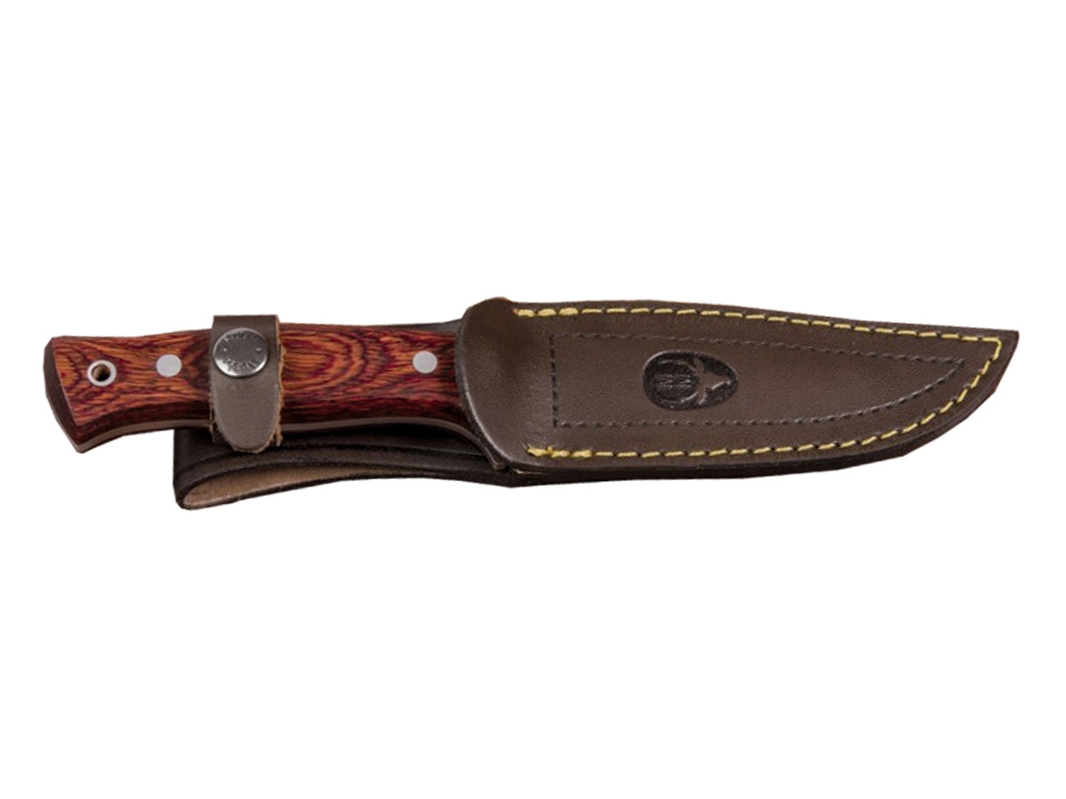 Il coltello Muela  POINTER 12R si presenta con una lama realizzata in acciaio MOVA (1.4116) e con il manico in un bellissimo legno corallo pressato.  E'  accompagnato da un fodero in cuoio  di alta qualità .