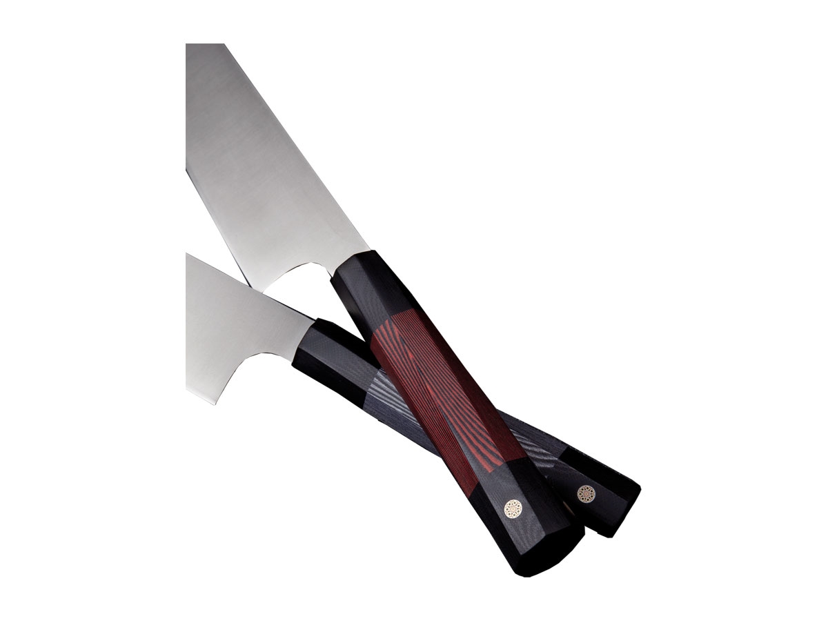 I coltelli da cucina della serie XinCare applicano acciaio inossidabile antibatterico 304Cu per uso alimentare per il materiale principale. La serie massimizza la durezza e l'affilatura riducendo al minimo il rischio che i coltelli siano stati colpiti dai comuni batteri patogeni. I manici sono realizzati in G10 ottagonale ritorto in colore nero/bianco o in colore nero/rosso. Merita una prova per chi ha a cuore la pulizia, la nitidezza e il comfort durante la cottura.