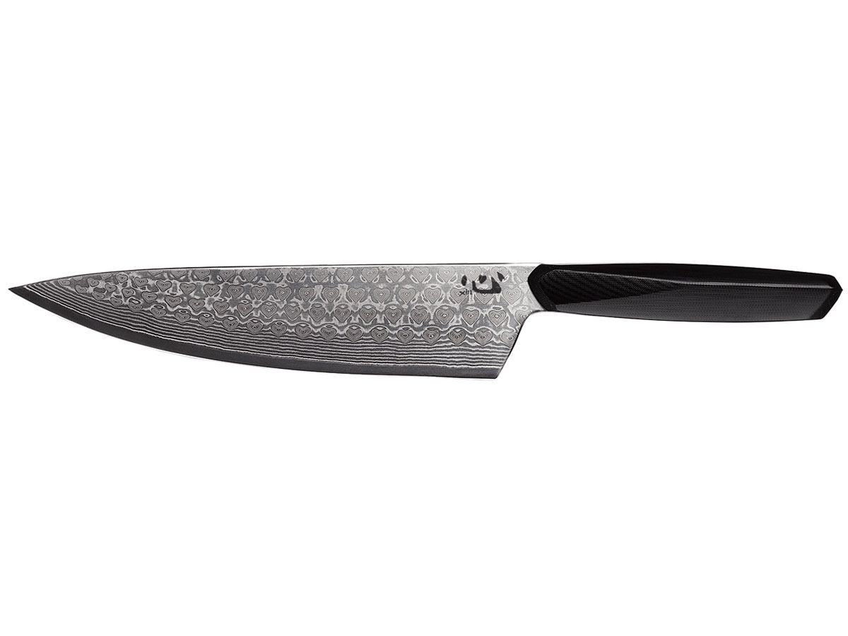 La lama presenta un acciaio damasco VG10 a 67 strati con 61±1 Rockwell, lucidato a specchio. In particolare, un motivo Damasco a forma di "cuore" dal design esclusivo viene applicato sulla lama, portando una sensazione nuova di zecca a tutti i fan di Damasco. L'impugnatura applica fibra-resina G10 con lucidatura a mano e la forma ergonomica dell'impugnatura massimizza il comfort, la presa e la manovrabilità.