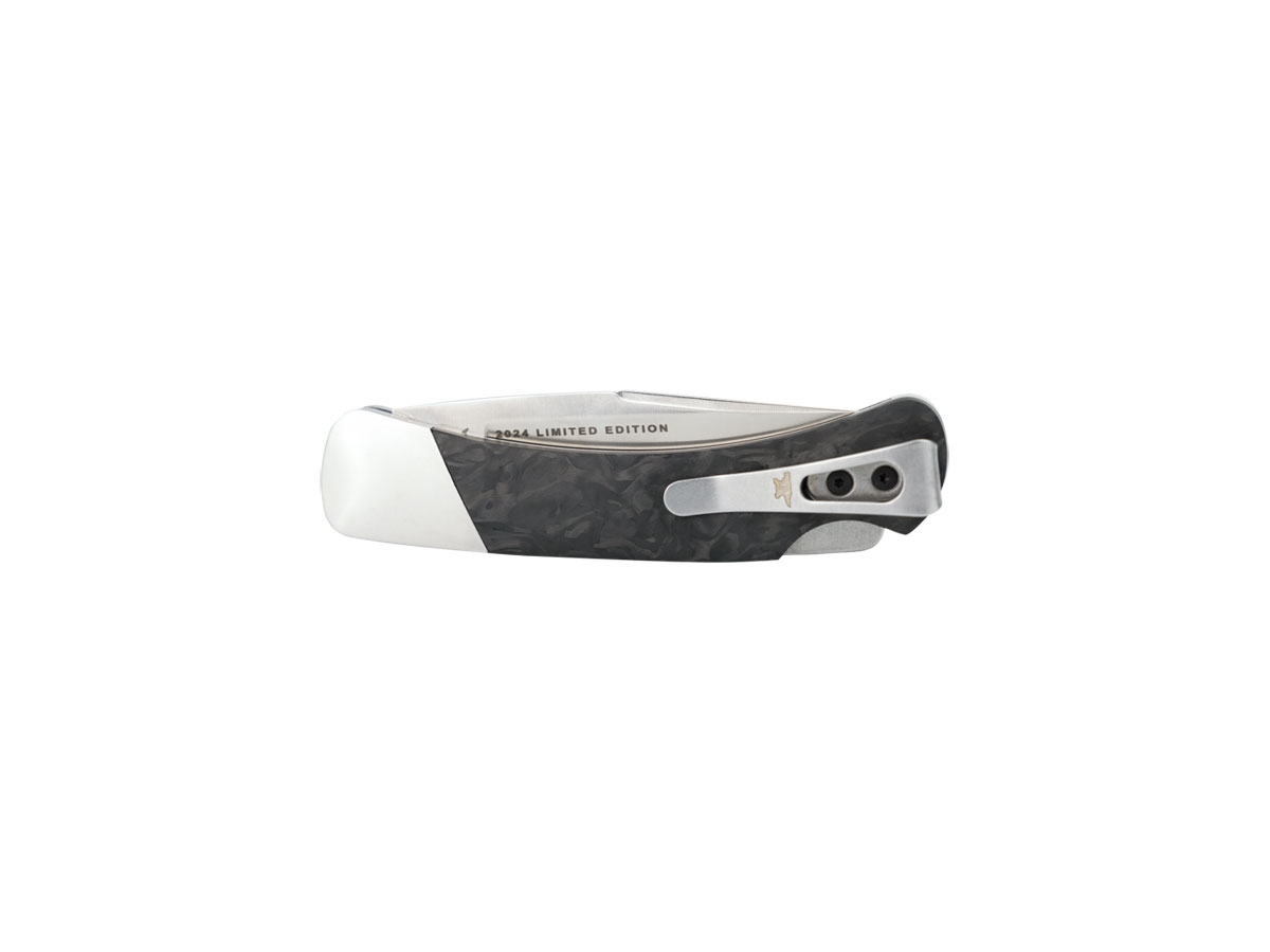 Questa Edizione Limitata del Duke 500 della Legacy Collection 2024 presenta eleganti guancette in fibra di carbonio marmorizzata con testina in nichel silver. La lama clip point modificata è realizzata con acciaio S30V. Questa edizione con una clip da tasca porta questo coltello a metà tra una tascabile moderno ed uno classico.