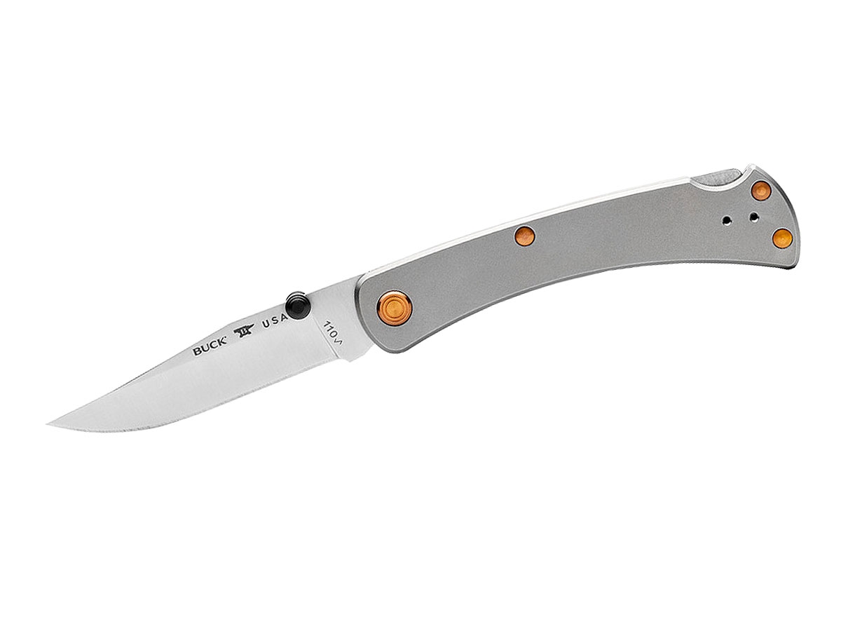 Questa Edizione Limitata del Folding Hunter 110 Slim Pro TRX presenta eleganti guancette in titanio con chiusure in bronzo. La lama clip point è satinata e realizzata con acciaio S45VN premium. Buck mantiene il suo impegno per la qualità ed il design accurato.