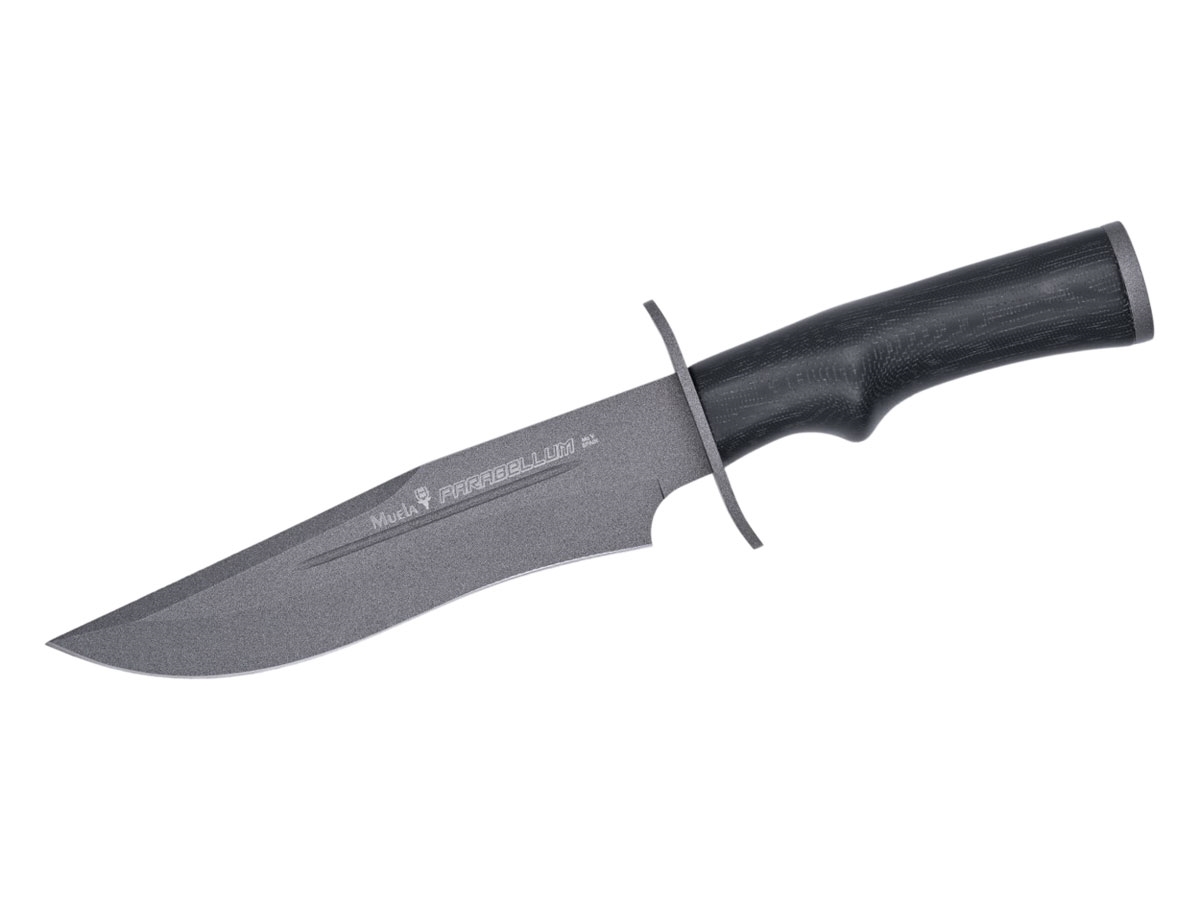 Il Parabellum 17N è un coltello grande e resistente destinato agli appassionati militari e di sopravvivenza. E' dotato di una lama lunga e massiccia di tipo Bowie in acciaio inox, perfettamente bilanciata, che fornisce un'enorme potenza di taglio. Il manico ha un profilo ergonomico ed è realizzzato in Micarta nera, che dona al coltello un tocco di leggerezza. Il fodero in pelle è di alta qualità.