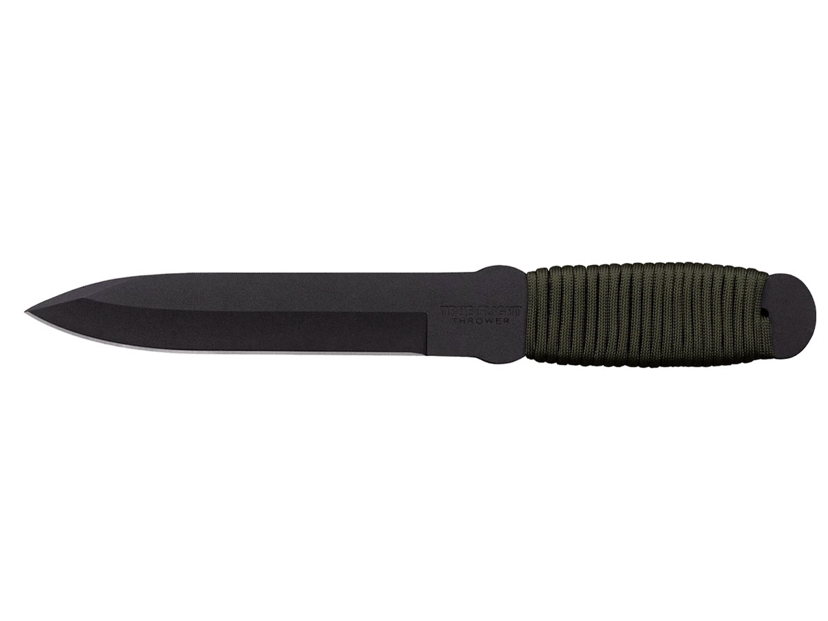 Il True Flight Thrower è uno dei coltelli da lancio più popolari. Realizzato in acciaio al carbonio 1055 e rifinito con un rivestimento protettivo nero, il True Flight è un lanciatore ben bilanciato e resistente che ha anche un tagliente funzionale. Come tale servirà anche come un eccellente coltello da caccia o da sopravvivenza.