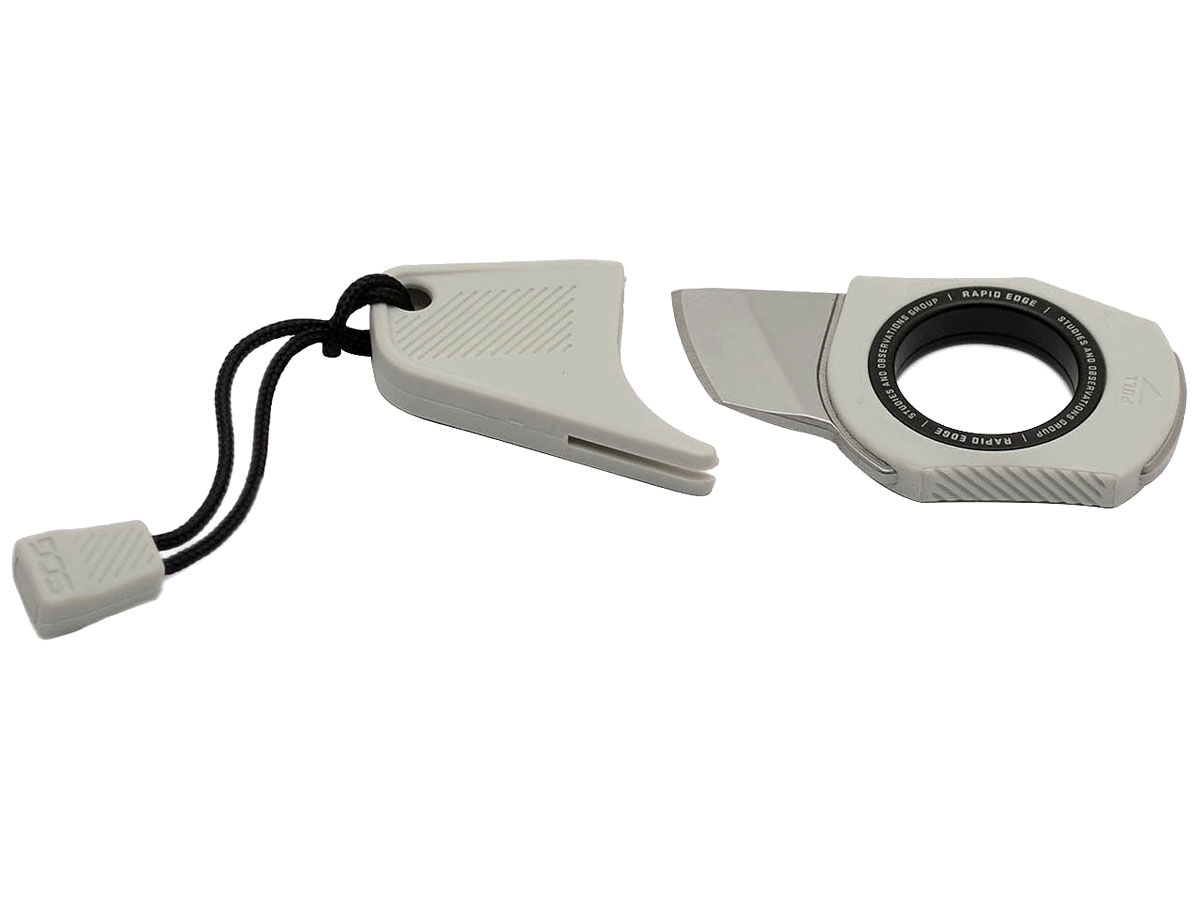 Il Rapid Edge è dotato di una lama compatta. Conservato su un portachiavi o un passante per cordino, si dispiega rapidamente e facilmente e passa inosservato quando non è in uso. Il design dell'impugnatura guida intuitivamente le dita nella posizione ottimale quando è dispiegata, offrendo una presa sicura per iniziare a lavorare. Rapid si dispiega rapidamente dalla guaina con un semplice tiro ed è facilmente controllabile con un dito attraverso il foro per l'indice. Realizzato con un design a codolo intero, anello di trazione in alluminio e impugnatura e guaina GRN testurizzate.