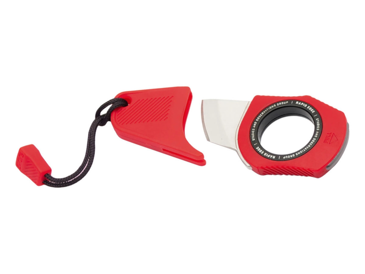 Il Rapid Edge è dotato di una lama compatta. Conservato su un portachiavi o un passante per cordino, si dispiega rapidamente e facilmente e passa inosservato quando non è in uso. Il design dell'impugnatura guida intuitivamente le dita nella posizione ottimale quando è dispiegata, offrendo una presa sicura per iniziare a lavorare. Rapid si dispiega rapidamente dalla guaina con un semplice tiro ed è facilmente controllabile con un dito attraverso il foro per l'indice. Realizzato con un design a codolo intero, anello di trazione in alluminio e impugnatura e guaina GRN testurizzate.