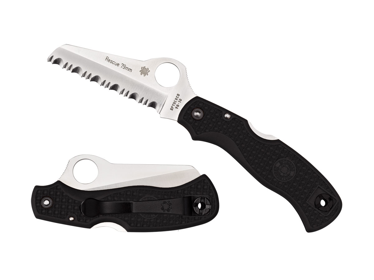 Un equivalente più piccolo del C14 93mm Rescue, anch'esso ha una lama piatta a sciabola, SpyderEdge, VG-10 che termina con una punta di sicurezza a forma di piede di pecora. Per una rotazione più fluida del pollice abbiamo allargato il foro rotondo del marchio Spyderco, che a sua volta crea una gobba prominente su cui posizionare il pollice durante il taglio. Il manico con texture waffle FRN è disponibile in blu indaco, nero e arancione di sicurezza con una clip da tasca ribaltabile ambidestra.