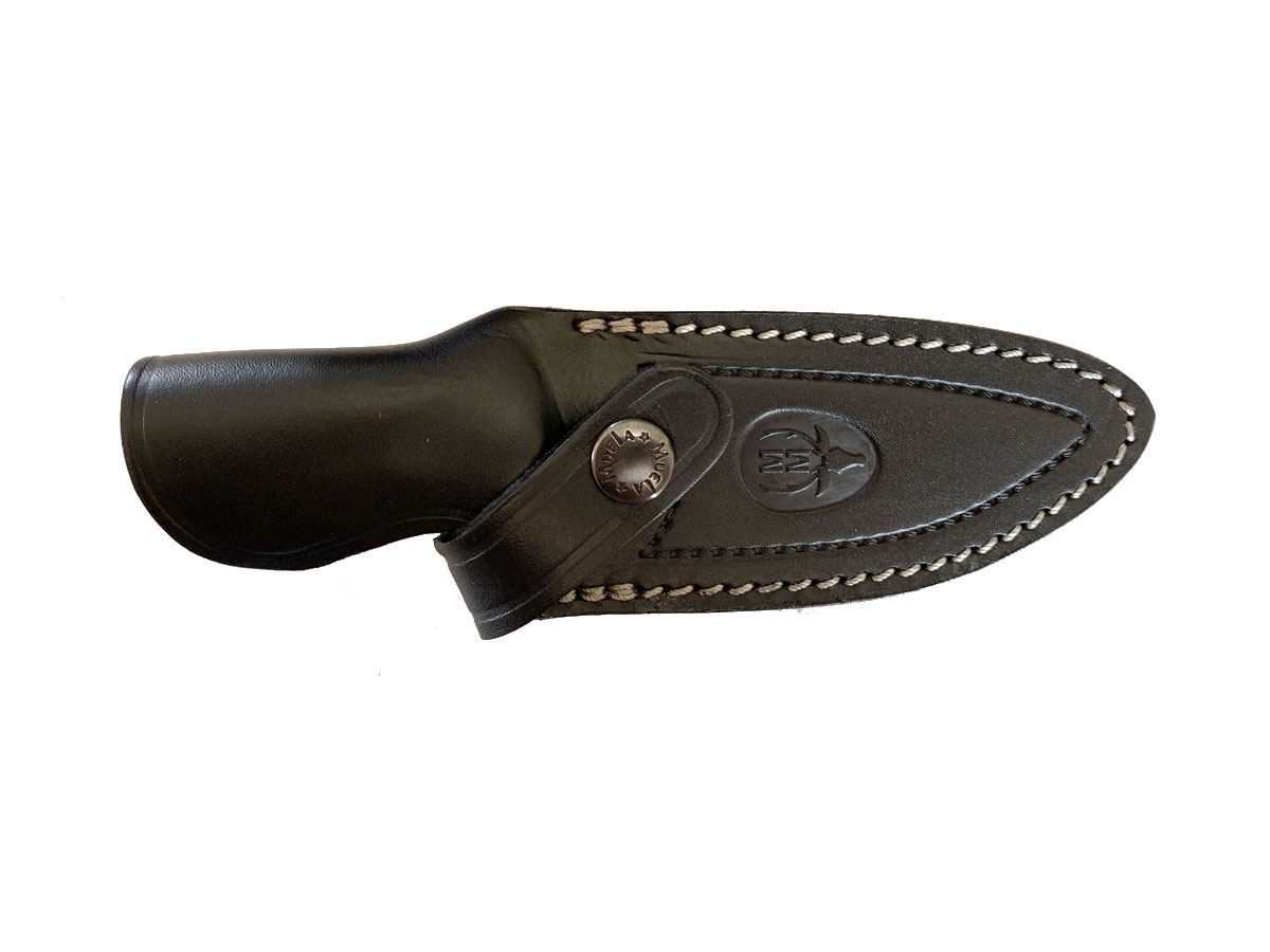 Manufacturas Muela presenta il coltello integrale TUAREG. E' dotato di una bellissima custodia in pelle bovina di alta qualità . Disponibile in due versioni :una con il manico in micarta nero/blu e l'altra con il manico in micarta color yuta.
