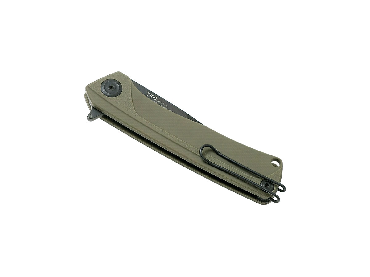 Da apprezzare è il flipper di apertura dotato di ANV lumi dot, la lama Drop Point in acciaio svedese Sleipner, il robusto alloggiamento della lama con impugnatura in Nylon o G10 e la sicurezza del meccanismo di blocco Liner Lock. Il tutto è completato da una profonda clip reversibile, grazie alla quale destrimani e mancini potranno portare comodamente lo Z100.