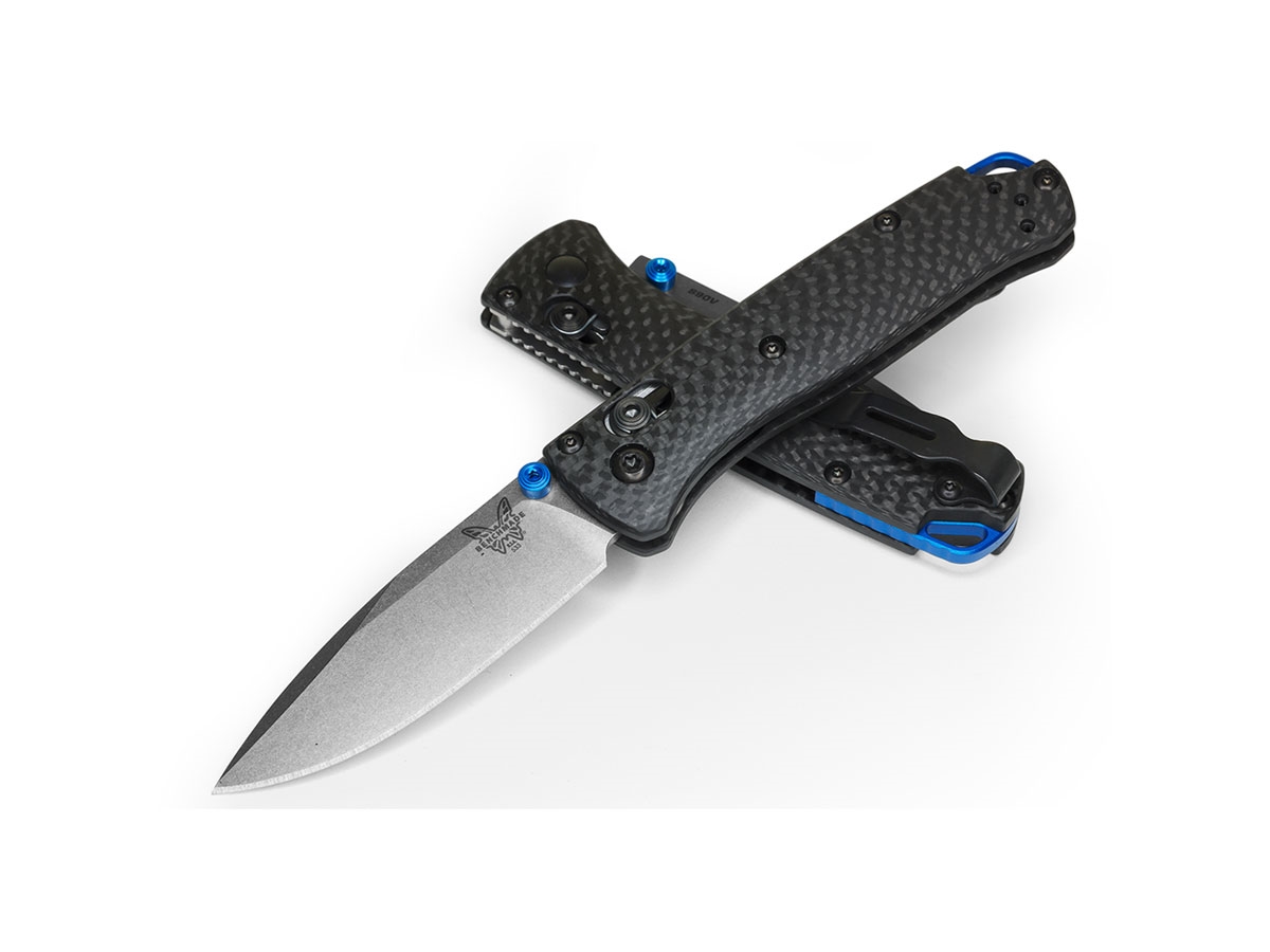 Prendendo spunto dallla sua versione più grande, il 533-3 fa il salto al super acciaio CPM-S90V e all'impugnatura in fibra di carbonio fresata, con un distanziatore posteriore in alluminio anodizzato blu e borchie blu per il pollice. Unendo la caratteristica utilità ultraleggera con materiali ultra-premium, il 533-3 Mini Bugout stabilisce un nuovo standard per questa popolare linea di strumenti tascabili EDC compatti.