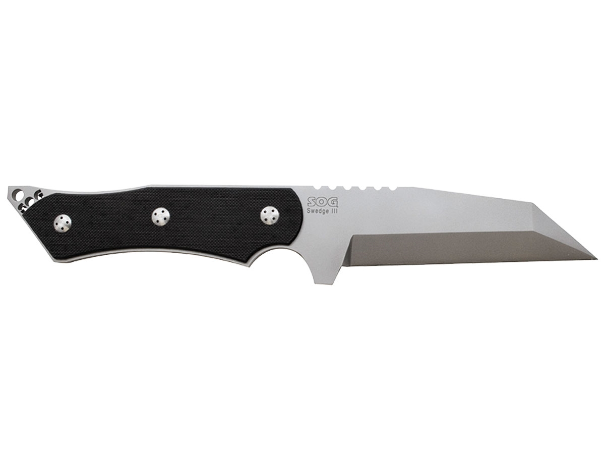 Lo Swedge III nasce dalla collaborazione con Brent Beshara. In qualità di istruttore militare canadese per operazioni speciali per 24 anni, artista marziale per tutta la vita e costruttore di coltelli custom, Brent ha creato per la serie degli Swedge una nuova geometria della lama che rende le punte dei coltelli molto più forti e meno soggette a rotture. La lama a codolo pieno è realizzata in acciaio inossidabile AUS8, menter l'impugnatura è realizzata in G-10 testurizzato che offre una buona presa anche in condizioni di bagnato. È incluso un fodero in Kydex che consente di montare il coltello in una varietà di configurazioni diverse.