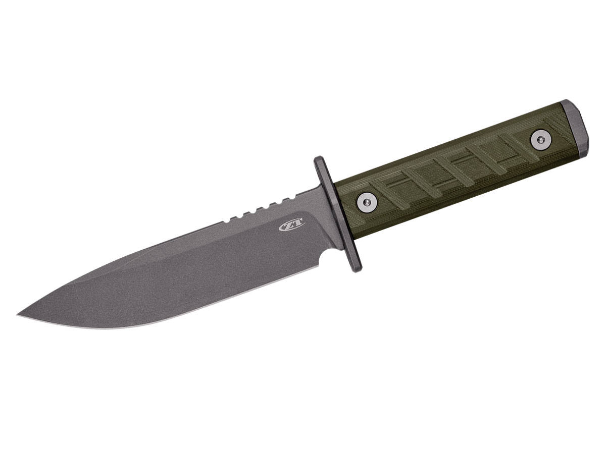 Che sia per la sopravvivenza, i grandi spazi aperti o i progetti estivi, lo 0006 di ispirazione militare è la risposta. Prende il nome dalla sua lama da 6 pollici, lo 0006 utilizza CPM 3V, un acciaio per utensili resistente che resiste alla scheggiatura del bordo durante le attività di lavoro più difficili. Sebbene questo acciaio non inossidabile non sia stato progettato per la resistenza alla corrosione, ZT ha aggiunto un rivestimento Cerakote trasparente per una maggiore durata. È una lama spessa a 3/16 pollici, ma ancora molto funzionale. Il profilo arrotondato riempie la mano senza essere troppo grande e un manico in G10 verde oliva offre una presa confortevole.