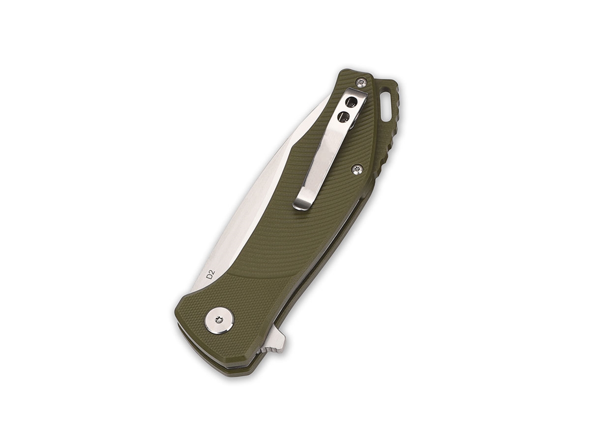Il Raven è un tascabile EDC economico che presenta una lama drop point da 3,375 pollici in acciaio per utensili D2 con un flipper per l'apertura ad una mano sola. L'impugnatura in G10 presenta una testurizzazione che permette una presa sicura. La clip da tasca è in acciaio inossidabile.