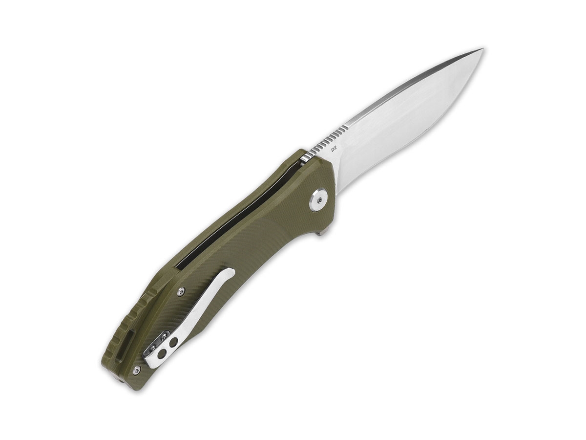 Il Raven è un tascabile EDC economico che presenta una lama drop point da 3,375 pollici in acciaio per utensili D2 con un flipper per l'apertura ad una mano sola. L'impugnatura in G10 presenta una testurizzazione che permette una presa sicura. La clip da tasca è in acciaio inossidabile.