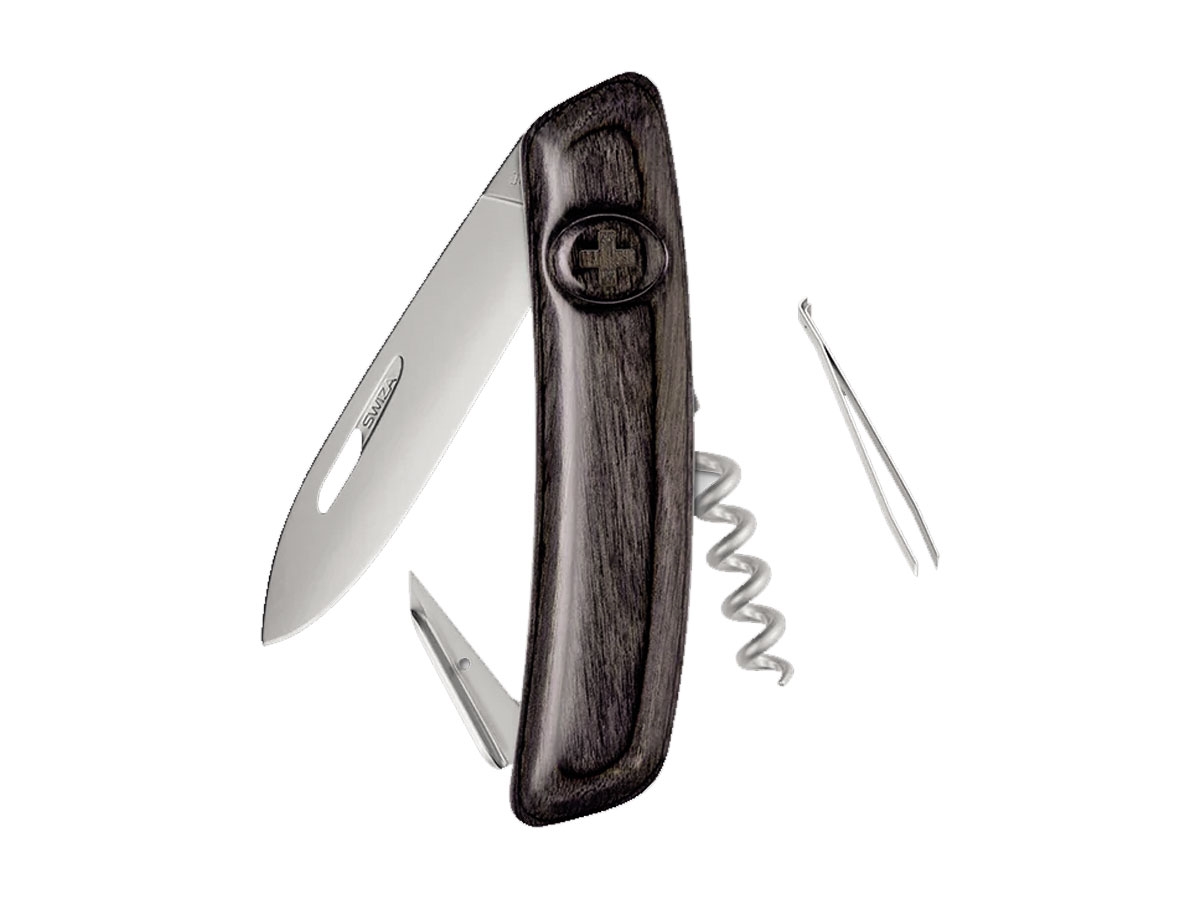 LAMA:    mm 75DIMENSIONE:    mm  95PESO:  gr  70DESIGN:  Design ergonomico rivoluzionario a 360 ° . Lama e attrezzi con unghiatura per facilitare l'apertura con la mano sinistra o destra.MATERIALE:  Costruzione compatta con piastre in acciaio. Lama in acciaio inox  440 extra solido, 57 HRc.FINITURA:  Superfici metalliche satinate e opache.MANICO:  Realizzato in laminato.SICUREZZA:  Lama con blocco di sicurezza per impedire la chiusura durante il  lavoro. La lama può essere sbloccata premendo la croce SWIZA.