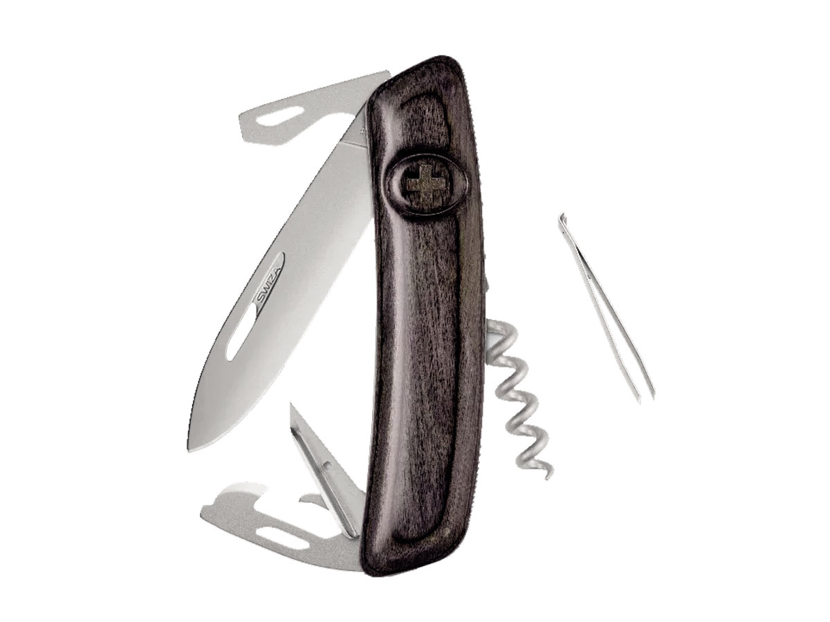 LAMA:    mm 75DIMENSIONE:    mm  95PESO:  gr  88DESIGN:  Design ergonomico rivoluzionario a 360 ° . Lama e attrezzi con unghiatura per facilitare l'apertura con la mano sinistra o destra.MATERIALE:  Costruzione compatta con piastre in acciaio. Lama in acciaio inox  440 extra solido, 57 HRc.FINITURA:  Superfici metalliche satinate e opache.MANICO:  Realizzato in laminato.SICUREZZA:  Lama con blocco di sicurezza per impedire la chiusura durante il  lavoro. La lama può essere sbloccata premendo la croce SWIZA.