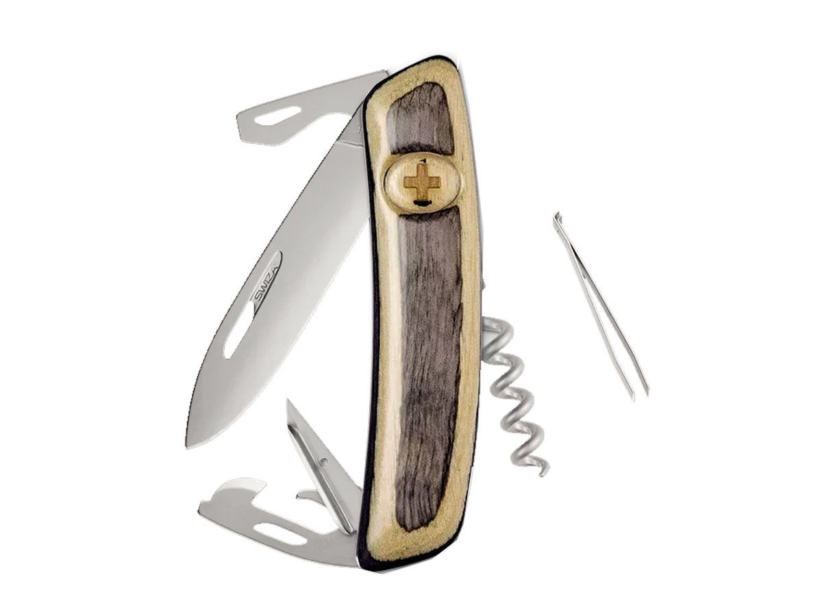 LAMA:    mm 75DIMENSIONE:    mm  95PESO:  gr  88DESIGN:  Design ergonomico rivoluzionario a 360 ° . Lama e attrezzi con unghiatura per facilitare l'apertura con la mano sinistra o destra.MATERIALE:  Costruzione compatta con piastre in acciaio. Lama in acciaio inox  440 extra solido, 57 HRc.FINITURA:  Superfici metalliche satinate e opache.MANICO:  Realizzato in laminato.SICUREZZA:  Lama con blocco di sicurezza per impedire la chiusura durante il  lavoro. La lama può essere sbloccata premendo la croce SWIZA.