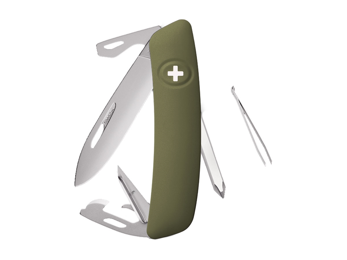 SICUREZZA:  Lama con blocco di sicurezza per impedire la chiusura durante il  lavoro. La lama può essere sbloccata premendo la croce SWIZA.