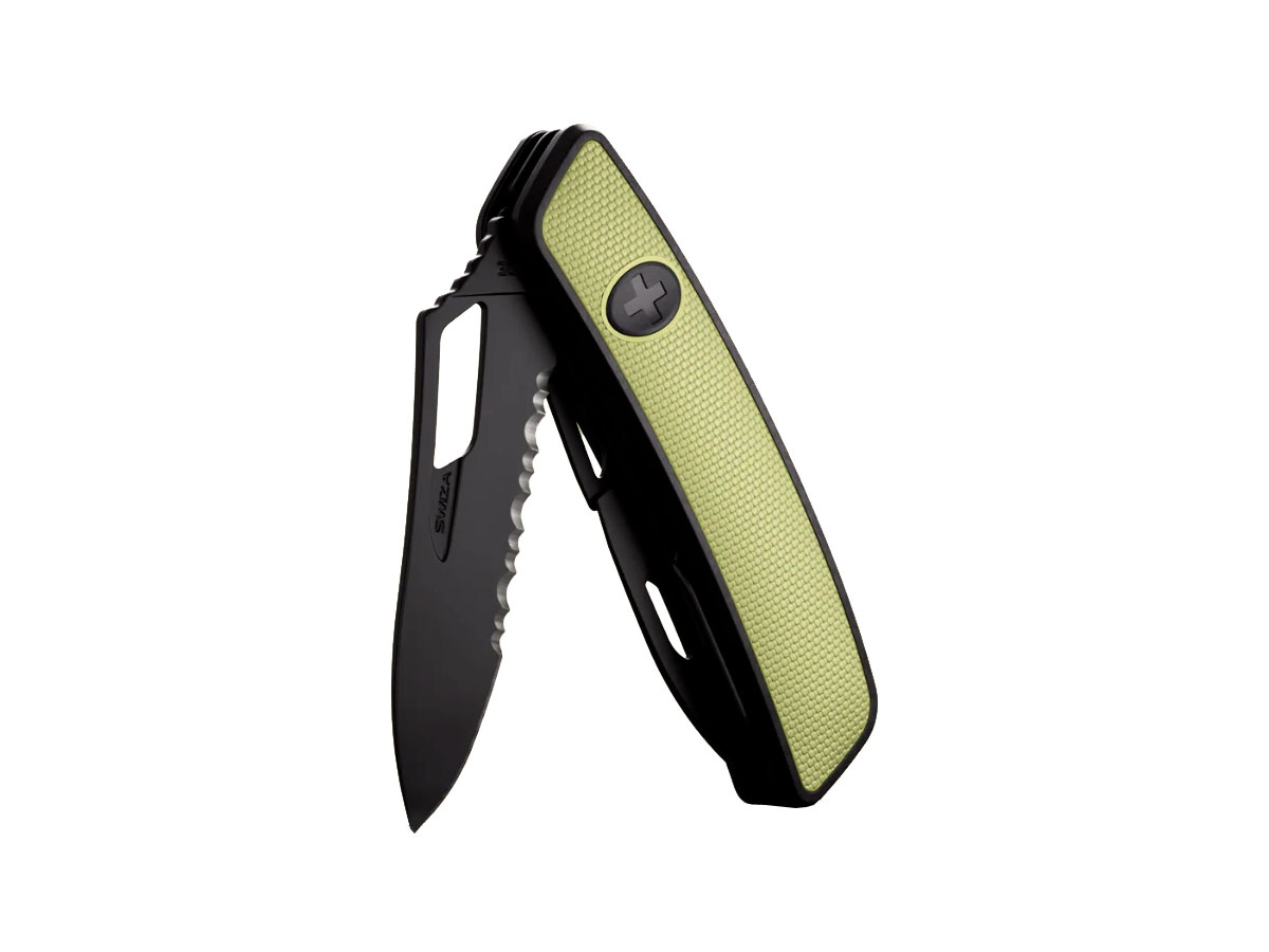 LAMA:    mm 75DIMENSIONE:    mm  95PESO:  gr  88DESIGN:  Design ergonomico rivoluzionario a 360 ° . Lama e attrezzi con unghiatura per facilitare l'apertura con la mano sinistra o destra.MATERIALE:  Costruzione compatta con piastre in acciaio. Lama in acciaio inox 1.4110.FINITURA:  Superfici metalliche con rivestimento PVD , che conferisce una finitura nera opaca.MANICO:  Resistente e antigraffio.SICUREZZA:  Lama con blocco di sicurezza per impedire la chiusura durante il  lavoro. La lama può essere sbloccata premendo la croce SWIZA.