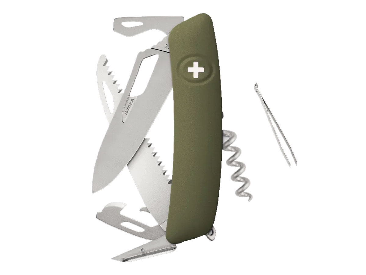 - Lama da 75 mm "Single Hand" c/sistema di bloccaggio- Alesatore / Punteruolo da cucito c/asola- Levacapsula c/cacciavite piatto No. 3 e  piega fili- Apriscatole c/cacciavite piatto No. 1- Cavatappi - Pinzette-  Seghetto