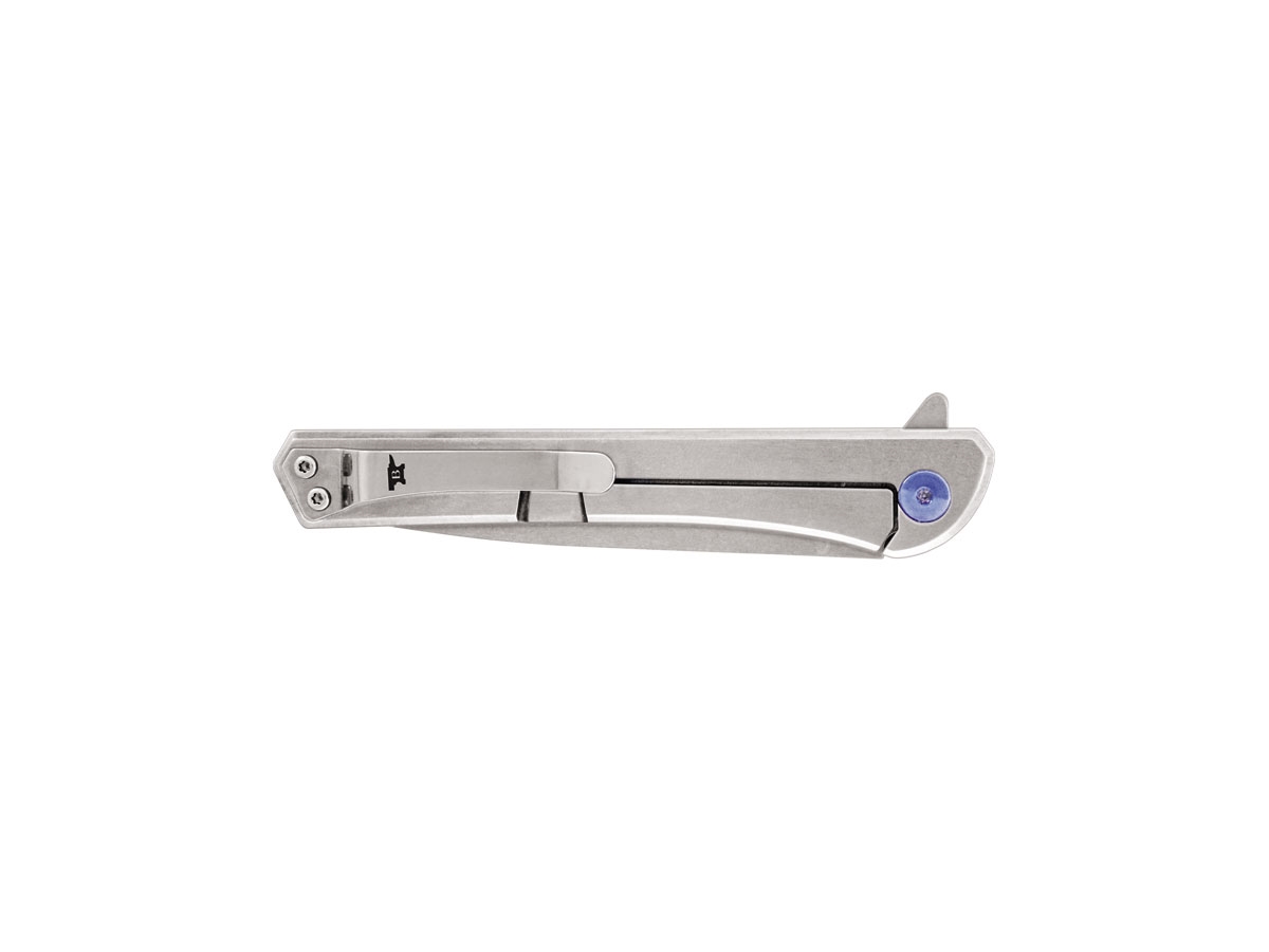 Il Cavalier 264 è un elegante tascabile EDC dalla linea sottile. Utilizza la tecnologia dei cuscinetti a sfera e un flipper della lama per un'apertura fluida e senza interruzioni, mentre la lama è ben fissata con un blocco del telaio (frame lock). Il manico è in alluminio anodizzato grigio con inserto in fibra di carbonio ed è abbellito da elementi di fissaggio blu. La clip da taschino in acciaio inossidabile con finitura stonewash aggiunge comodità di trasporto.