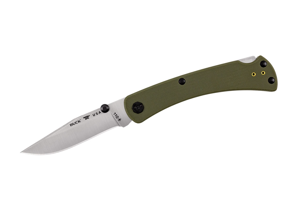 Questo 110 Slim Pro TRX si basa sull'originale 110 Folding Hunter, ma è nuovo ed ha un design migliorato. Il 110 Slim Pro TRX è dotato di viti Torx sul gruppo rivetto standard e ha una clip da tasca di nuova concezione con rivestimento nero Cerakote. Ha una lama clip point in acciaio inossidabile S30V con doppio thumbstuds, che consente un'apertura ambidestra con una sola mano. La lama è rifinita con l'avanzata tecnologia Edge2x di Buck che permette un'incredibile affilatura ed un'eccelente durata del filo. Il manico in G10 viene proposto in nuovi colori.