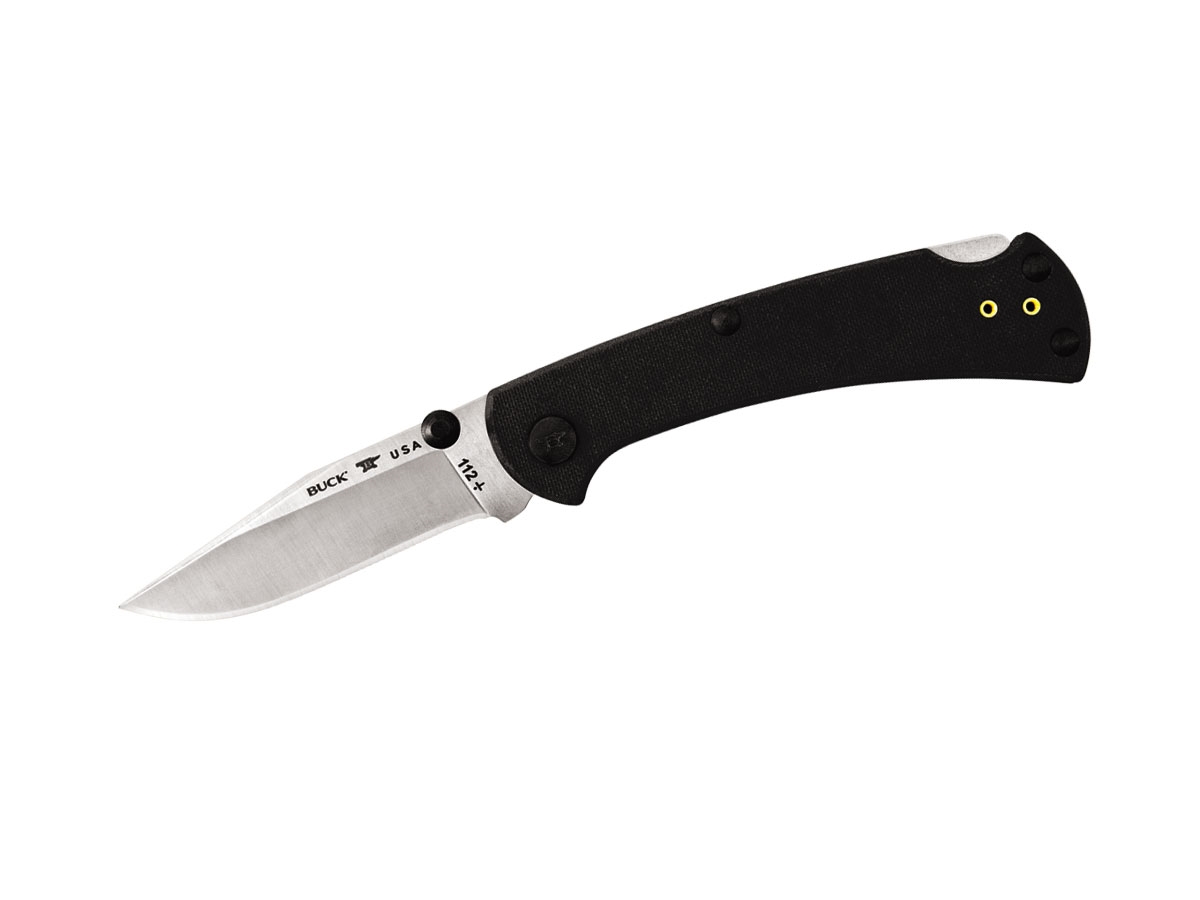 Questo 112 Slim Pro TRX si basa sull'originale 112 Folding Ranger, ma è nuovo ed ha un design migliorato. Il 112 Slim Pro TRX è dotato di viti Torx sul gruppo rivetto standard e ha una clip da tasca di nuova concezione con rivestimento nero Cerakote. Ha una lama clip point in acciaio inossidabile S30V con doppio thumbstuds, che consente un'apertura ambidestra con una sola mano. La lama è rifinita con l'avanzata tecnologia Edge2x di Buck che permette un'incredibile affilatura ed un'eccelente durata del filo. Il manico in G10 viene proposto in nuovi colori.