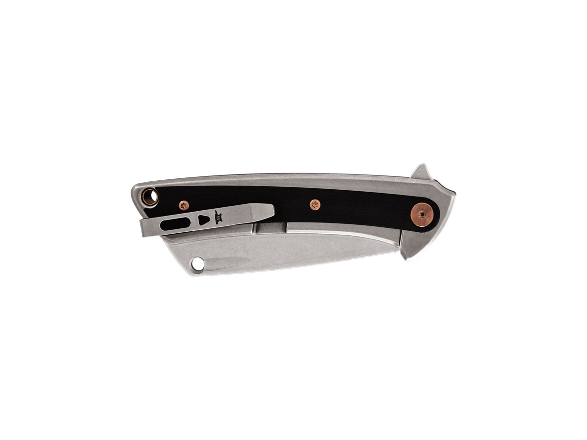 L'HiLine 263 è un tascabile EDC robusto dotato di una lama a forma di mannaia in acciaio D2. I cuscinetti a sfera ed un flipper consentono un'apertura facile, mentre la lama è ben fissata con un blocco del telaio (frame lock). Il manico è in alluminio anodizzato grigio con inserti in G10 ed è abbellito da elementi di fissaggio rivestiti in titanio con finitura bronzo antico. Una clip da tasca in acciaio inossidabile con rifinitura stonewashed consente di portare l'HiLine ovunque.