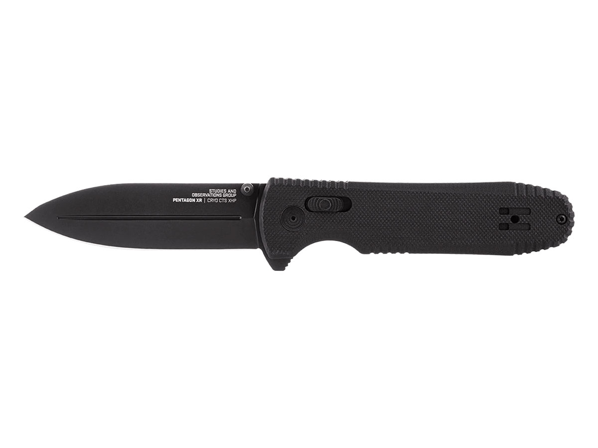 Progettato per la difesa, il SOG Pentagon XR è dotato di una lama spear point in acciaio inossidabile CTS XHP da 3,6 pollici con trattamento termico criogenico, e di un manico in G10 ultra-grip. Il blocco lama XR di SOG consente un'apertura fluida e ambidestra con una sola mano e in tre modi diversi e, una volta aperto, da la stessa sensazione e sicurezza di una lama fissa.