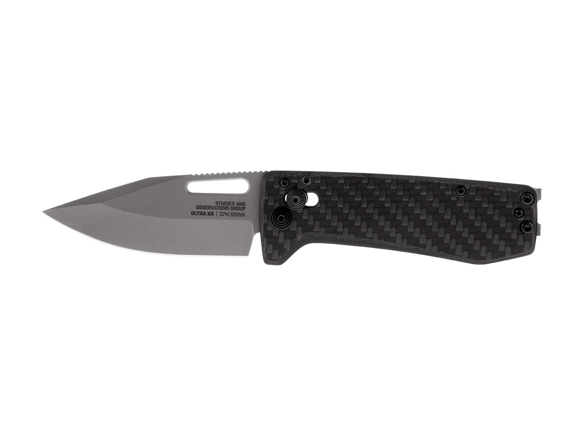 Con uno spessore di 6,5 mm ed un peso di soli 34 grammi, SOG Ultra XR presenta un design sottile e materiali leggeri di alta qualità, tra cui una lama in acciaio inossidabile CRYO CPM S35VN e un manico in fibra di carbonio. Il suo blocco XR consente un'apertura uniforme e ambidestra con una sola mano e blocca saldamente la lama aperta. La clip da tasca in titanio funge anche da fermasoldi.