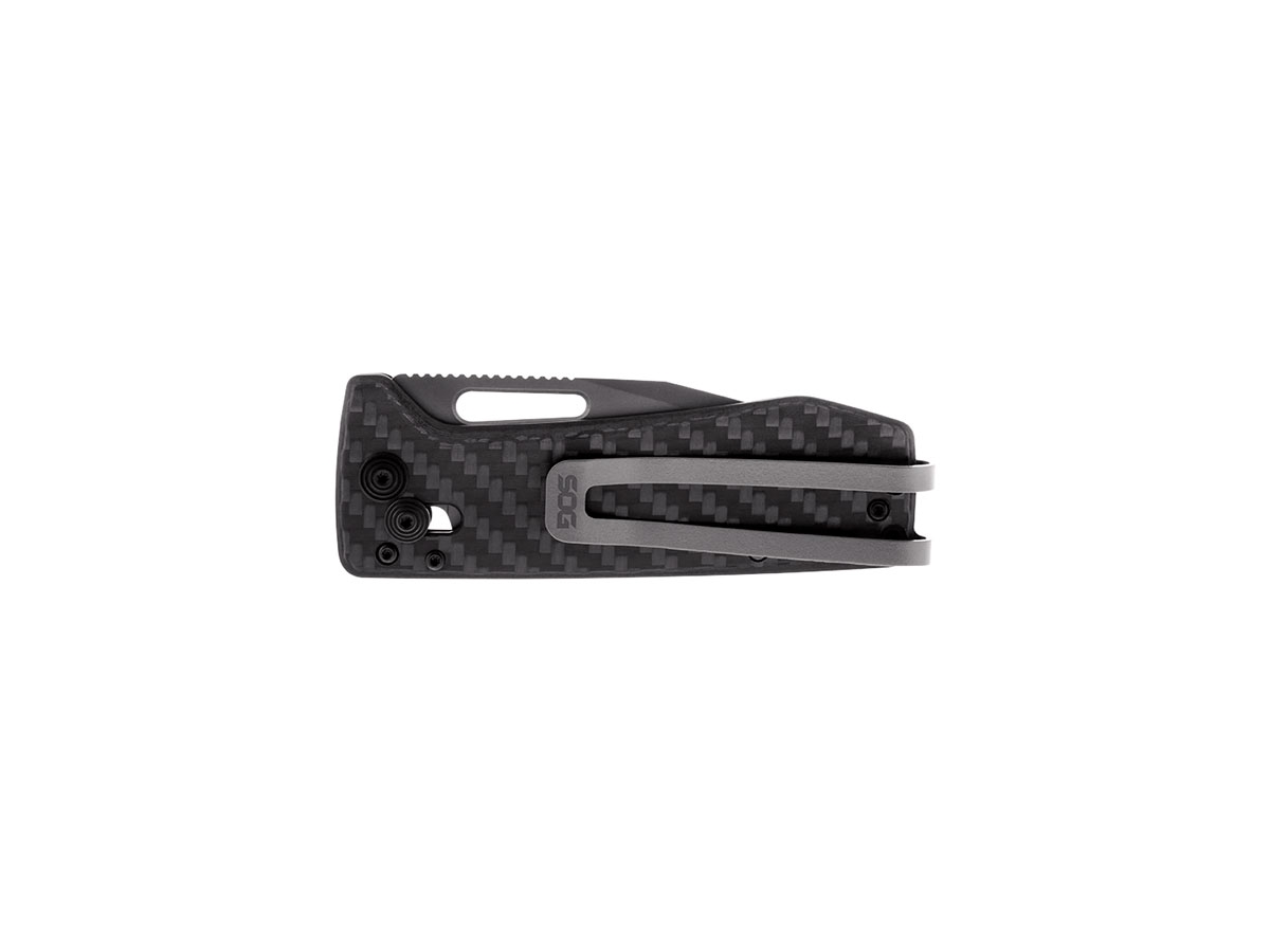Con uno spessore di 6,5 mm ed un peso di soli 34 grammi, SOG Ultra XR presenta un design sottile e materiali leggeri di alta qualità, tra cui una lama in acciaio inossidabile CRYO CPM S35VN e un manico in fibra di carbonio. Il suo blocco XR consente un'apertura uniforme e ambidestra con una sola mano e blocca saldamente la lama aperta. La clip da tasca in titanio funge anche da fermasoldi.