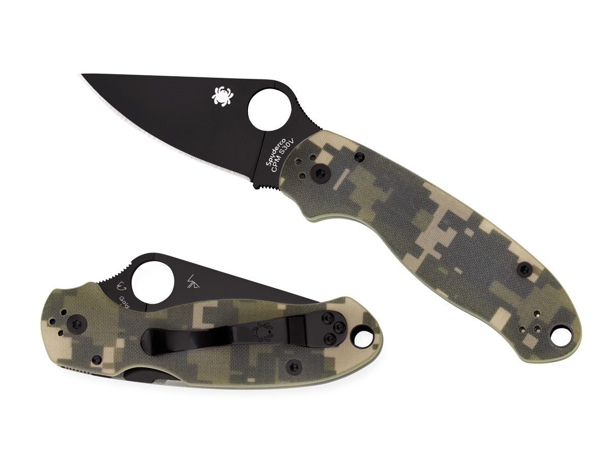 Questa versione del Para 3 ha una lama in acciaio inossidabile CPM S45VN avvolta da un rivestimento resistente e antiriflesso Diamond Like Carbon (DLC) ed una impugnatura con guancette G-10 testurizzate con un motivo mimetico digitale ispirato al modello ARPAT dell'esercito americano e lavorate con precisione per contenere le fodere in acciaio inossidabile annidate che sono la base del meccanismo Compression Lock. Per mantenere il coltello pronto per l'accesso immediato, include una clip a quattro posizioni che può essere configurata per il trasporto con ribaltamento o ribaltamento sul lato sinistro o destro.