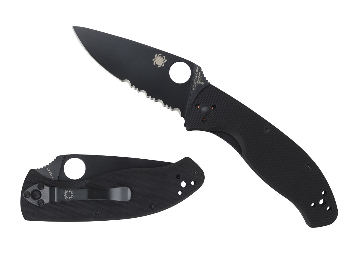 Il Tenacious ha una manico nero in G-10, ergonomicamente fresato con un taglio lungo con all'interno lamiere in acciaio scheletrato per aumentare la rigidità e la resistenza. La lama piatta è in acciaio 8Cr13MoV ed ha un rivestimento nero non riflettente. Una clip tascabile nera a 4 direzioni consente di impostare il tascabile in una varietà di posizioni: Tip up / tip-down sinistro / destro.