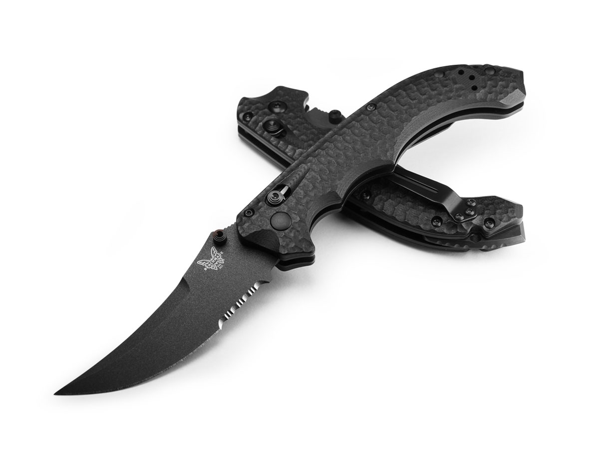 Il Mini Bedlam 865SBK è un coltello tattico dall'aspetto feroce, ridotto nelle dimensioni per un trasporto quotidiano più pratico, pur mantenendo l'aspetto e la sensazione tattici della sua controparte full-size. Dotato di lama in acciaio CPM-S90V di alta qualità con finitura Cerakote in grafite, la forma della lama a scimitarra rivolta verso l'alto è ottimizzata per agganciare e affettare e il bordo parzialmente seghettato è utile per tagliare materiali strutturati. L'impugnatura posteriore in G10, progettata per una presa forte e sicura per attività di taglio più grandi e movimenti rapidi, è aggressivamente strutturata con fresature dettagliate, dentellature e un distanziale posteriore smussato, che fornisce una consistenza di presa unica e superiore che scorre con la curvatura dell'impugnatura. Completo di un affidabile meccanismo di blocco manuale AXIS, affronta le tue attività quotidiane.