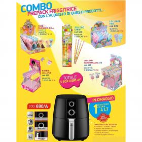 Scopri il mondo colorato e divertente delle caramelle Joygum con questa straordinaria offerta combo: 5 display assortiti ricchi di dolcezza e creatività, pensati per attrarre grandi e piccini grazie al loro design giocoso e ai gusti irresistibili. Un assortimento perfetto per punti vendita, tabaccherie e corner dedicati ai bambini, ideale per massimizzare la rotazione con prodotti originali e accattivanti. In omaggio, una friggitrice ad aria da 4 litri, pensata per unire il gusto alla praticità in cucina.• Face Changing Doll Candy Toys: 12 lecca-lecca dal gusto fruttato, con stick a forma di bambola che cambia espressione premendo la base, rendendo ogni assaggio un momento di gioco.• Candy Toys Fan Lollipop: 12 ventagli lecca-lecca colorati con supporto rotante, perfetti per le giornate calde e per stupire i bambini con un'esperienza multisensoriale.• Barbie Marshmallow Pop 30g: 18 bastoncini marshmallow decorati con grafiche Barbie ufficiali, soffici, dolci e perfetti per colpire il target amante dei brand iconici.• Unicorn Marshmallow Pop 30g: 18 marshmallow su stecco con unicorni sorridenti, un successo assicurato per chi ama le caramelle a tema fantastico.• Jelloo Strip Bag: 30 strisce dolci confezionate singolarmente in una bustina colorata, perfette da esporre per vendita singola o multipla.• Friggitrice ad aria 4L in omaggio: elegante, pratica e potente, cuoce senza olio per piatti croccanti e leggeri. Dotata di timer da 30 minuti, termostato regolabile e cestello antiaderente lavabile in lavastoviglie.Con questa combo garantisci al tuo punto vendita un assortimento completo e originale, con in più un omaggio di valore da utilizzare o da offrire come premio fedeltà ai clienti. Un'occasione da cogliere per unire visibilità a convenienza, con il fascino inconfondibile dei prodotti Joygum.