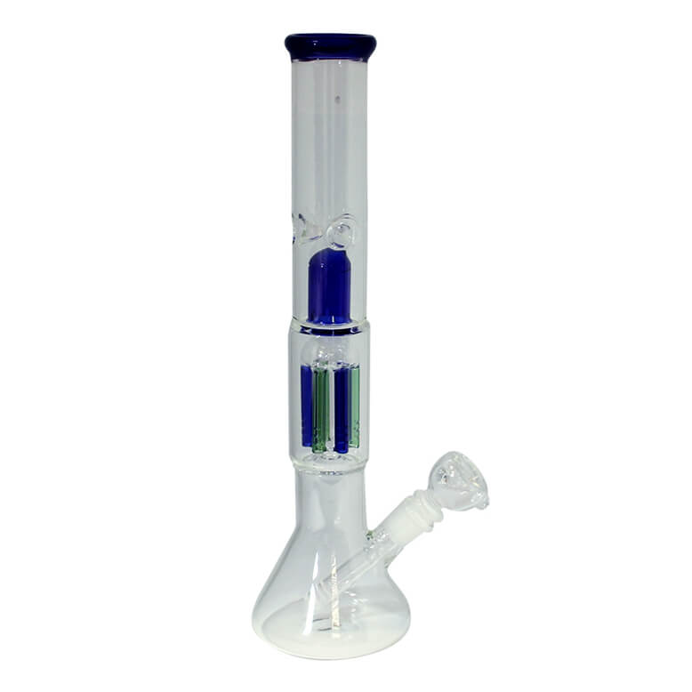 CONEY ICE BONG IN VETRO TRASPARENTE 38cm LAVORAZIONE BLU E VERDE D.9mm - 0212630