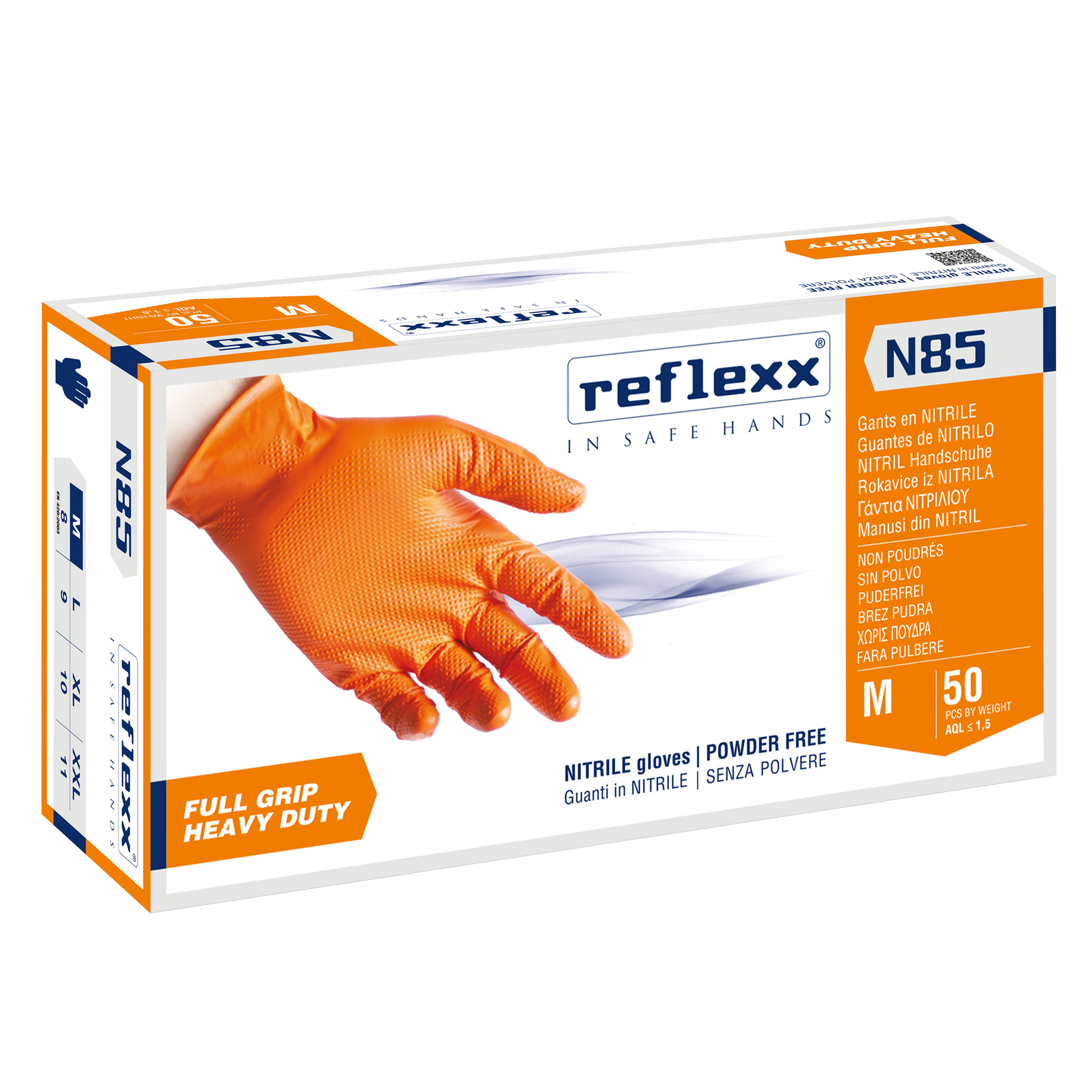 Conf 50 Guanti In Nitrile N85 arancione tg M ultra resistenti Reflexx