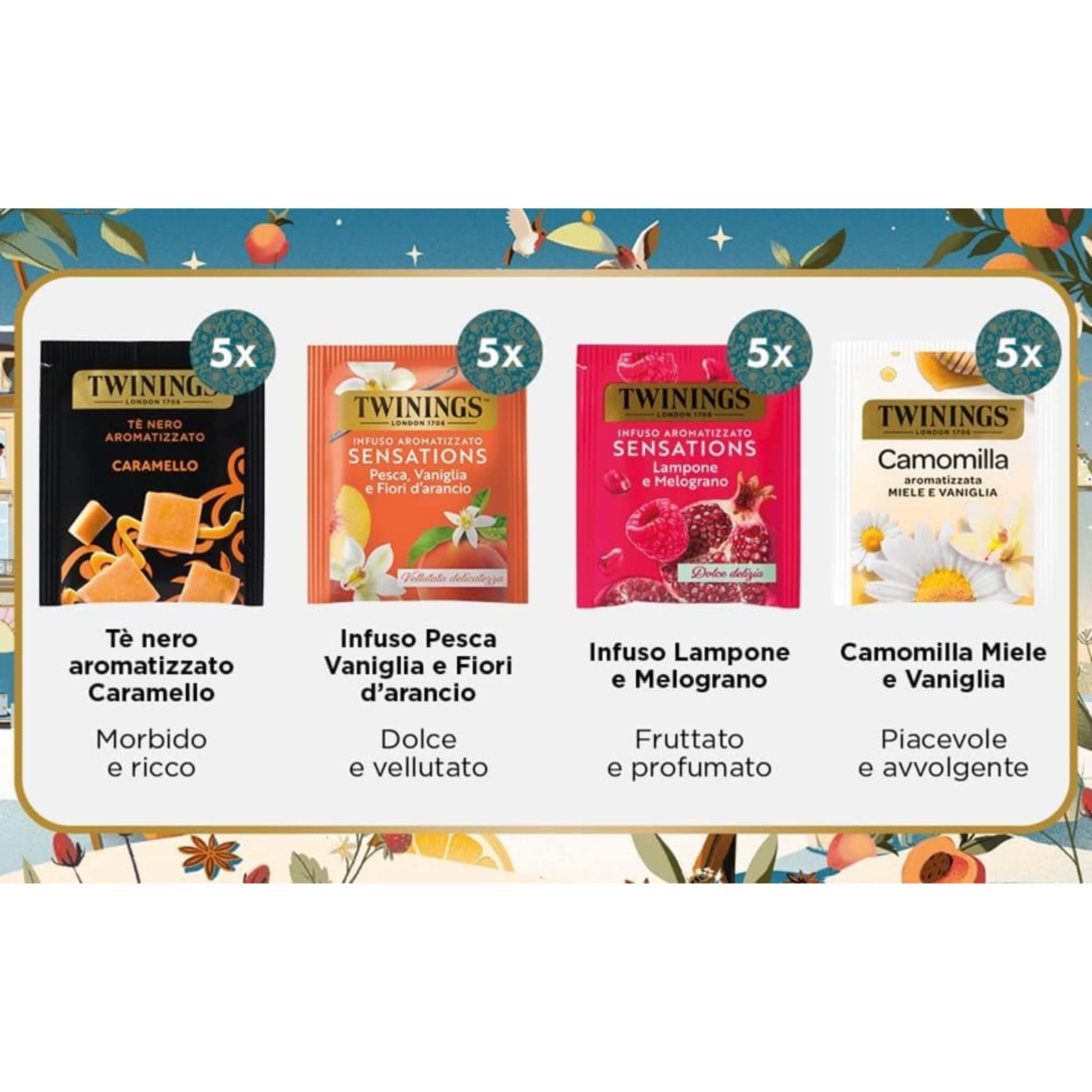 Ogni tazza della Selezione Twinings è un piccolo rituale che unisce profumi e sensazioni diverse. La varietà delle miscele consente di scegliere il gusto più adatto a ogni momento della giornata: energizzante al mattino, distensivo nel pomeriggio, rilassante alla sera. Perfetta per gli amanti del tè e per chi desidera un dono elegante e raffinato, questa confezione rappresenta l’essenza dello stile Twinings, dove gusto, qualità e benessere si fondono in un’esperienza unica.