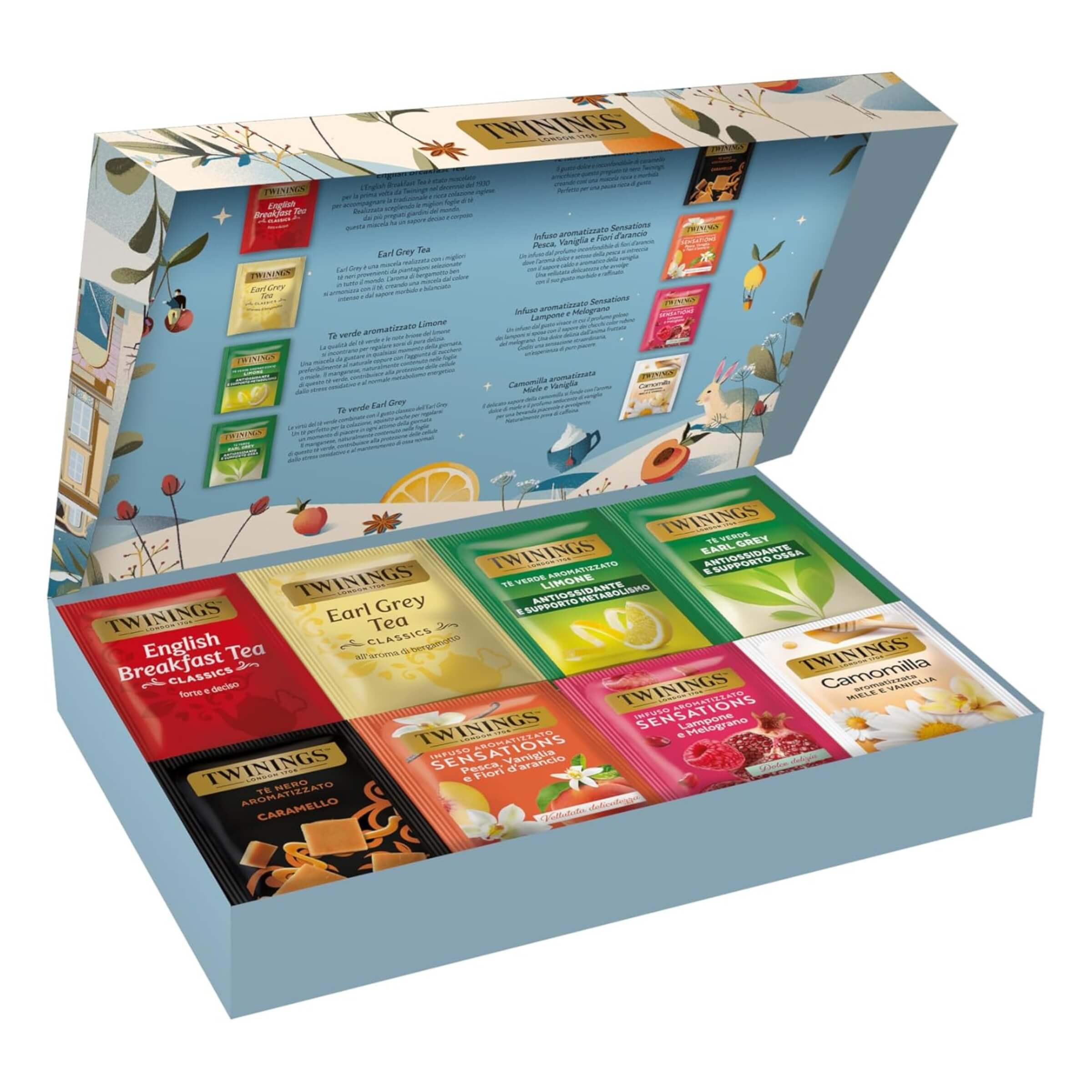 Ogni tazza della Selezione Twinings è un piccolo rituale che unisce profumi e sensazioni diverse. La varietà delle miscele consente di scegliere il gusto più adatto a ogni momento della giornata: energizzante al mattino, distensivo nel pomeriggio, rilassante alla sera. Perfetta per gli amanti del tè e per chi desidera un dono elegante e raffinato, questa confezione rappresenta l’essenza dello stile Twinings, dove gusto, qualità e benessere si fondono in un’esperienza unica.
