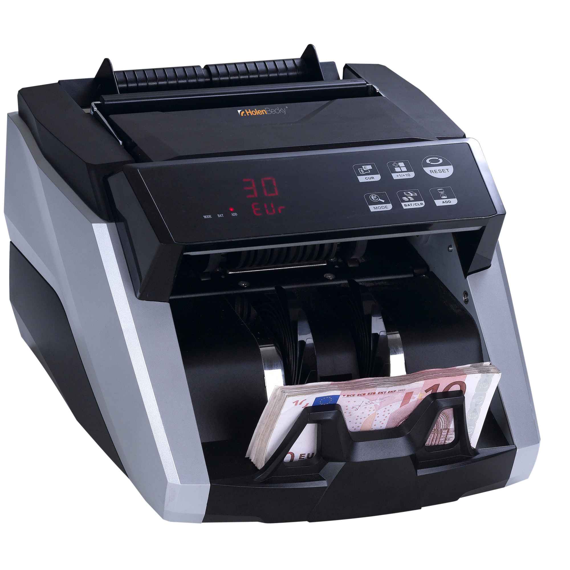 CONTA RILEVA BANCONOTE A SINGOLA DENOMINAZIONE PER VALUTE EURO O USD (SELEZIONABILI SUL DISPLAY), CON CARICAMENTO POSTERIORE. PANNELLO DI CONTROLLO TOUCH SCREEN. CONTROLLI: PRESENZA DI FIBRE RIFLETTENTI, INCHIOSTRO MAGNETICO, INFRAROSSO, SPESSORE E LARGHEZZA BANCONOTA, PRESENZA E VERIDICITA' DEL FILO METALLICO. EFFETTUA LA VERIFICA ED IL CONTEGGIO (NUMERO PEZZI) DELLE BANCONOTE DI SINGOLO TAGLIO (MODALITA' SORTE MODE). EFFETTUA IL SEMPLICE CONTEGGIO DI BANCONOTE, BUONI PASTO, TICKETS, BIGLIETTI, ECC. (MODAL