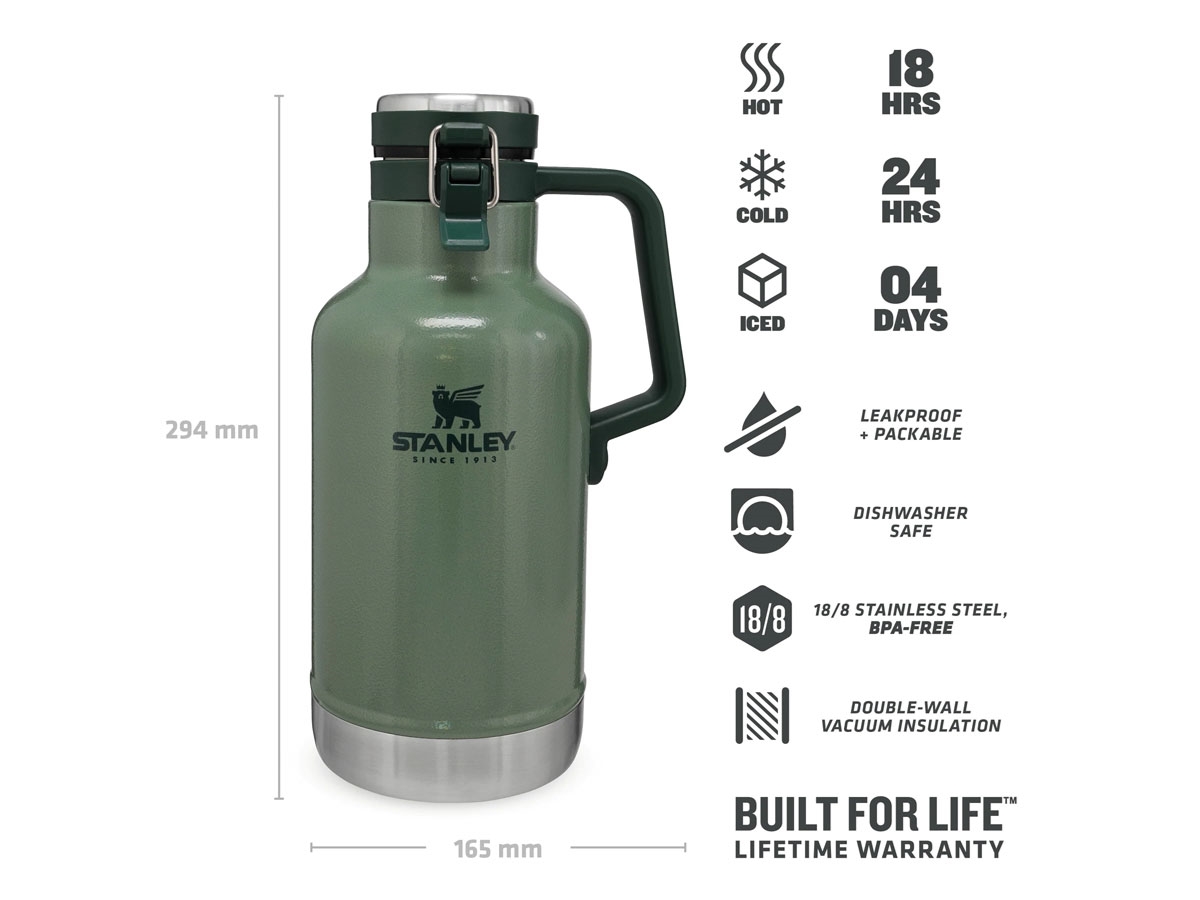 Trasporta la tua birra preferita in uno stile iconico e completamente funzionale. Il formato extra large mantiene i liquidi molto freddi fino a 24 ore. Prendi il controllo con una robusta maniglia per un trasporto più facile e per versare con una sola mano. L'ampia bocca consente un rapido riempimento, condivisione e pulizia. E quel "pop" soddisfacente che senti quando apri il coperchio rivestito in acciaio è un segno sicuro che la tua birra è ancora fresca e frizzante.