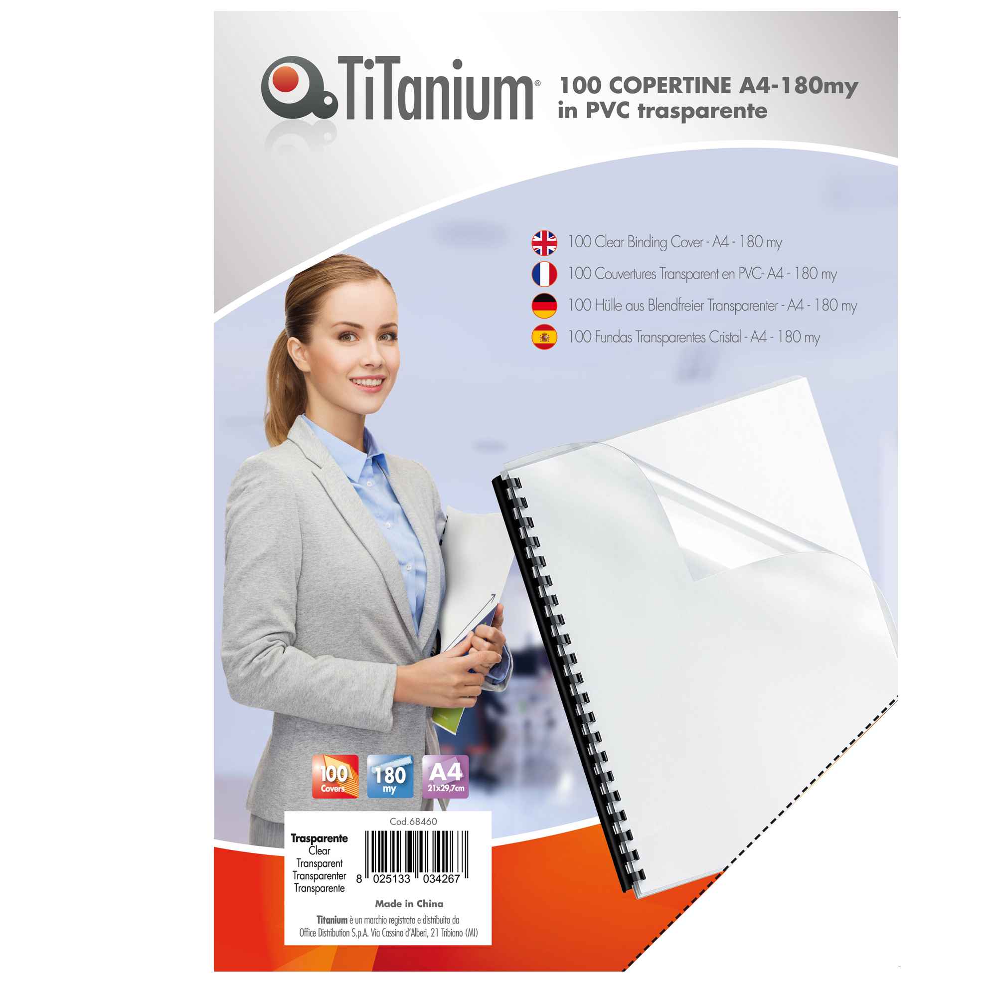 100 COPERTINE A4 PVC TRASPARENTE 180my TiTanium