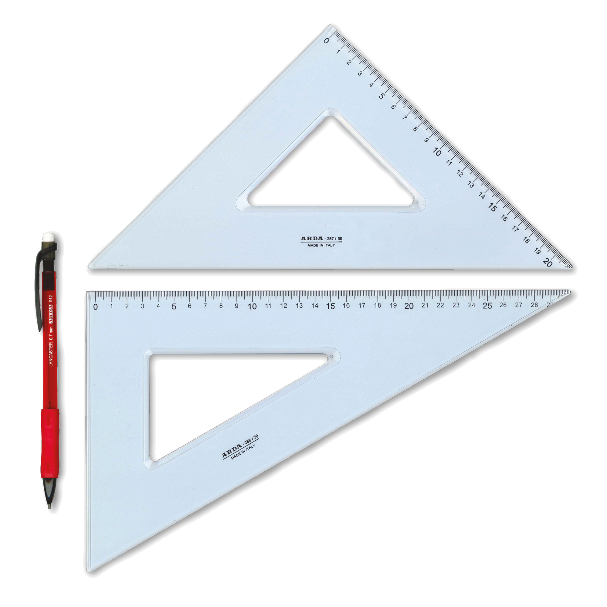 Coppia squadre 45 e 60 - 30 cm serie UNI + portamine 0,7 mm in comoda busta con chiusura a zip. Composto da 10