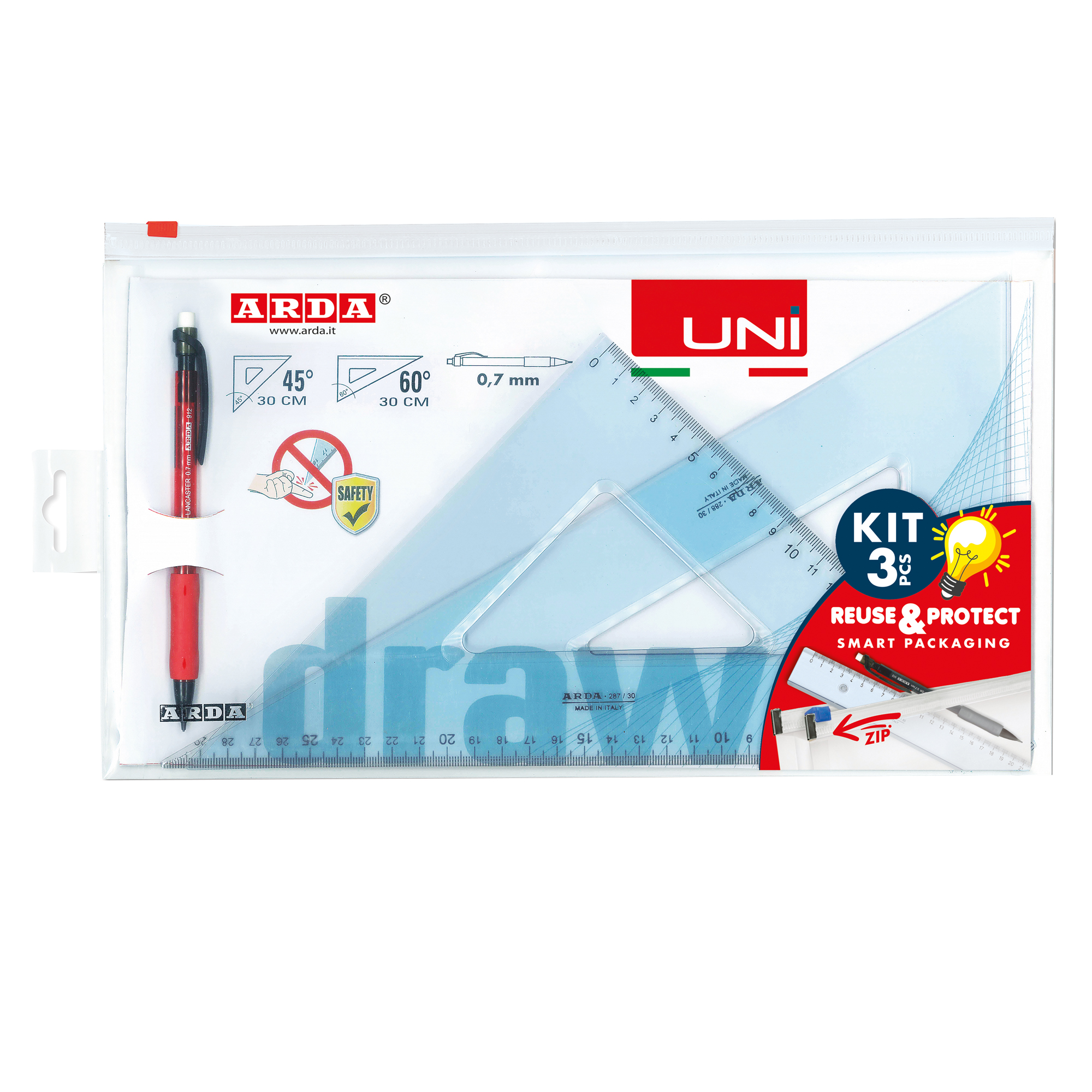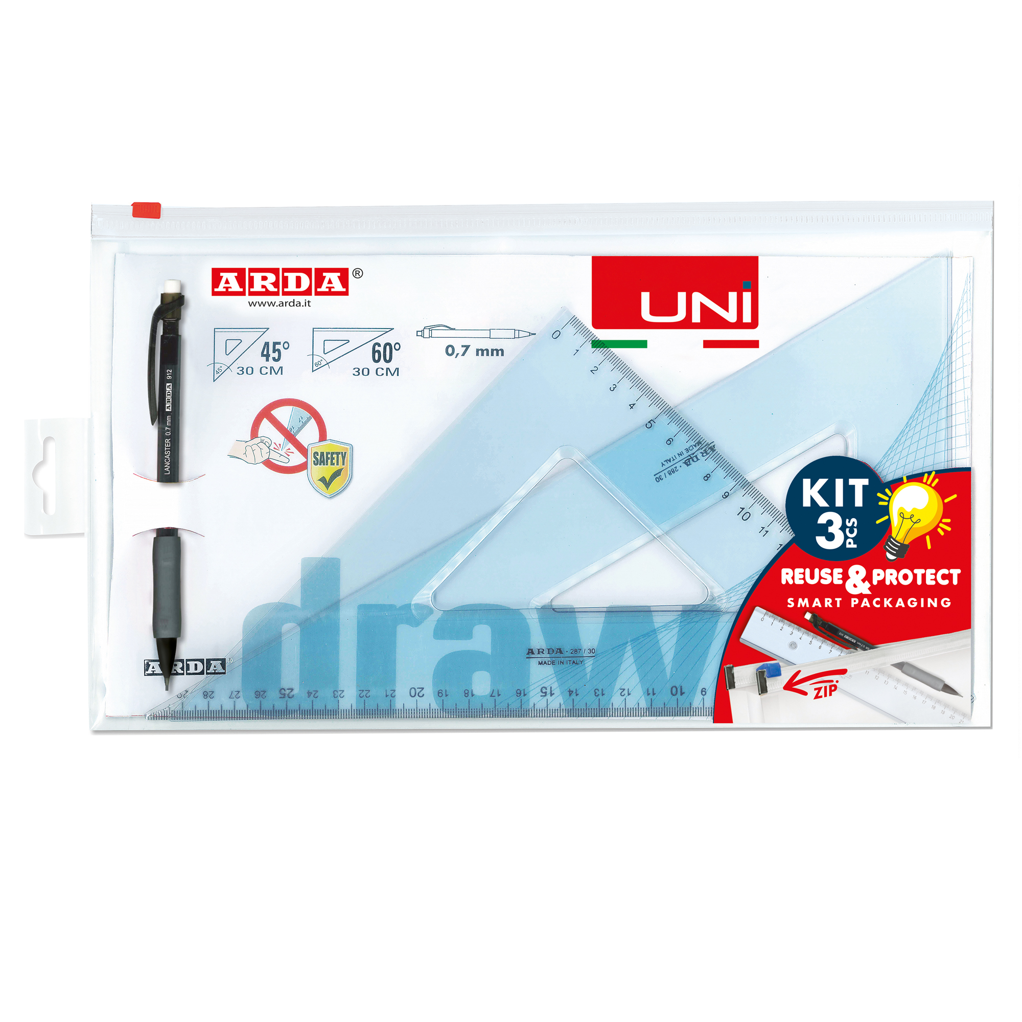 Coppia squadre 30cm UNII + portamine 0.7mm colori assortiti Arda