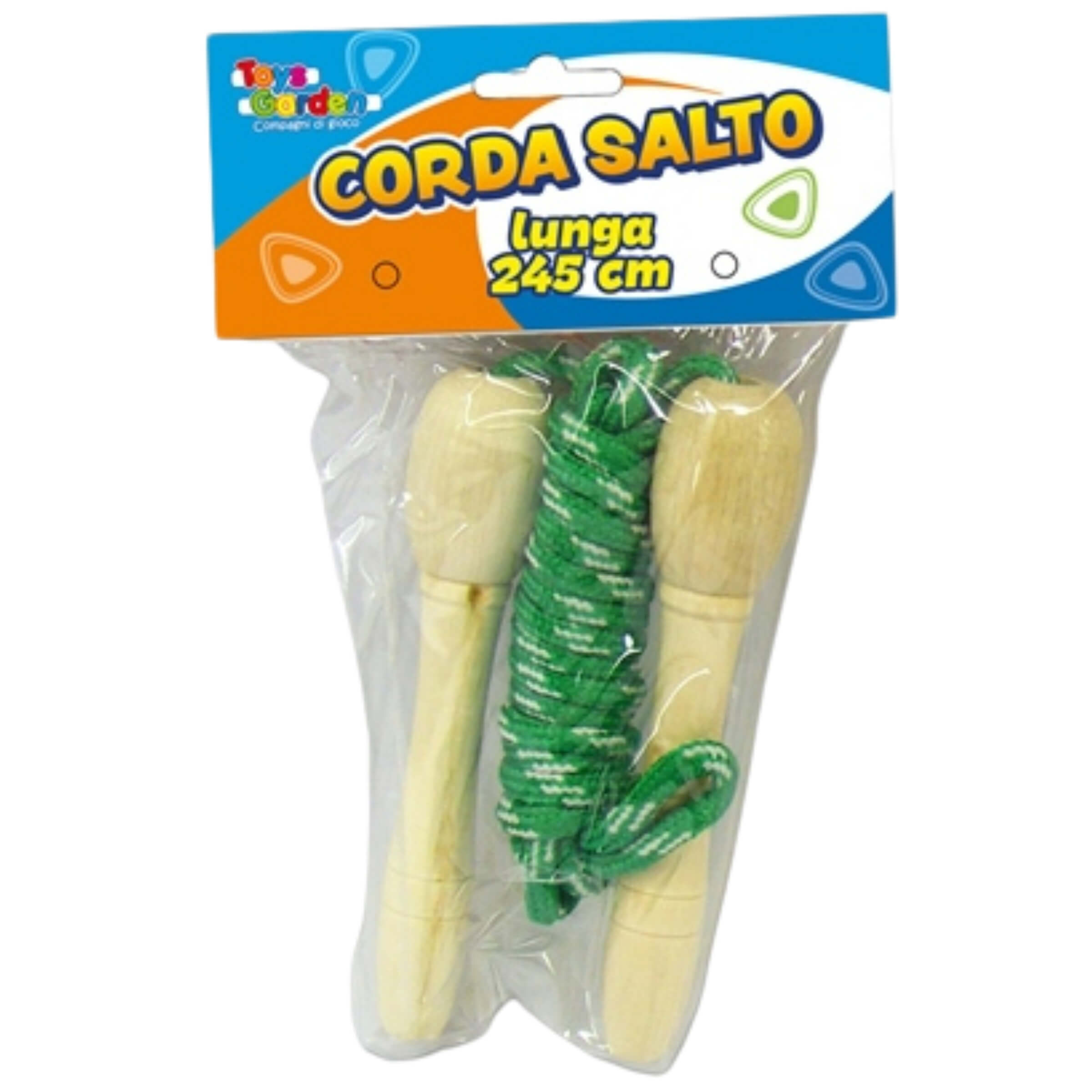 Saltare la corda non è solo un gioco tradizionale, ma anche un’attività dinamica che stimola coordinazione, agilità e resistenza fisica. Questa corda da salto da 245 cm è progettata per offrire divertimento e movimento a bambini e ragazzi, unendo semplicità e funzionalità in un design classico. I manici in legno offrono una presa naturale e confortevole, mentre la corda colorata in nylon intrecciato garantisce resistenza e vivacità. Perfetta per l’uso all’aperto, nei giardini o nei cortili scolastici, rappresenta un grande classico del gioco attivo.• Lunghezza totale 245 cm: Ideale per l’utilizzo da parte di bambini e ragazzi, consente salti ampi e fluidi sia in solitaria che in giochi di gruppo.• Manici in legno naturale: Impugnature robuste e lisce, facili da afferrare, che assicurano un controllo ottimale durante il movimento.• Corda in nylon intrecciato: Realizzata in materiale resistente all’usura, flessibile e adatto all’uso intensivo su superfici dure o erbose.• Colori assortiti: Disponibile in diverse varianti colore, tra cui rosso, blu e verde, con trama bicolore per un aspetto vivace e sportivo.• Leggera e trasportabile: La corda è arrotolabile con facilità e può essere portata ovunque, diventando un accessorio ideale per attività all’aperto, viaggi o tempo libero.Questa corda da salto è molto più di un semplice passatempo: è un invito al movimento, alla socializzazione e al gioco sano. Un accessorio senza tempo che unisce attività fisica e divertimento con la semplicità tipica dei giochi all’aria aperta.