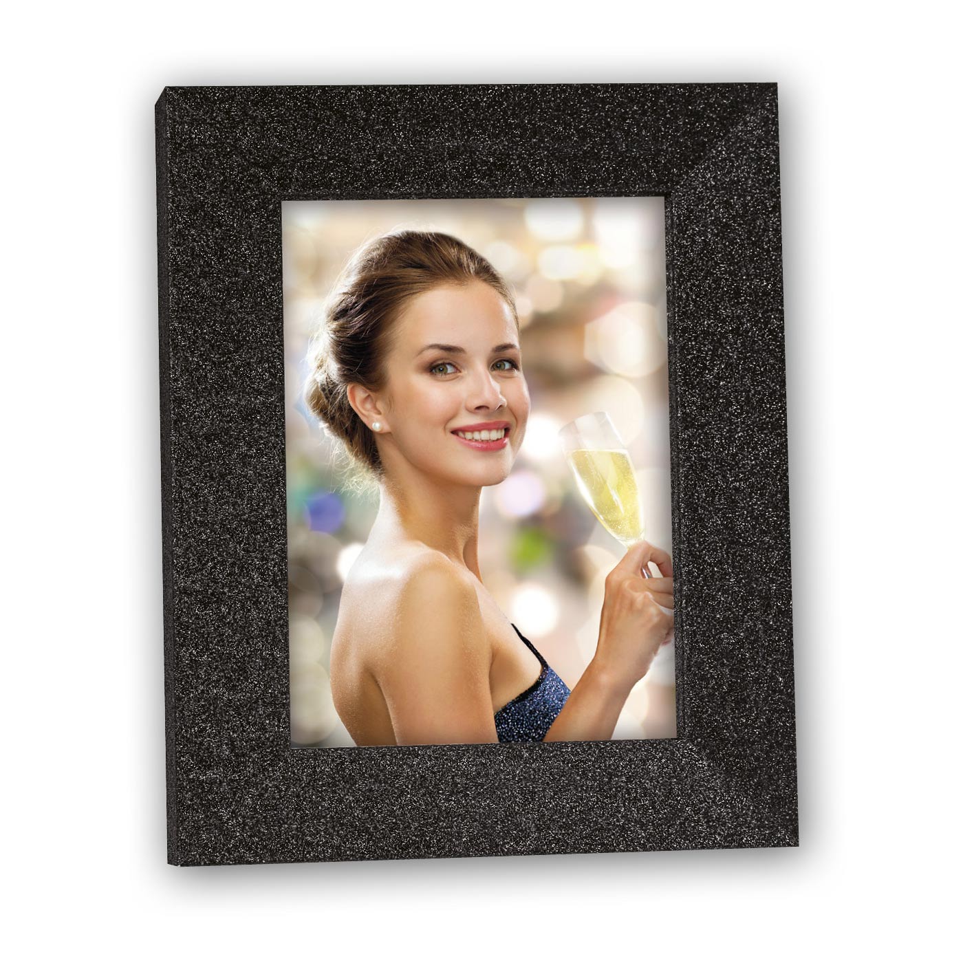 Cornice Broadway Black in legno, colore nero, con effetto glitterato, da tavolo o da parete, disponibile in vari formati, adatta per casa e ufficio. Cornice in legno MISURA FOTO (cm) 15x20 COLORE Nero SPESSORE CORNICE (cm) 1,5 MISURA ESTERNA (cm) 20,8 x 25,8 LARGHEZZA ASTA (cm) 3,5 PESO con scatola (gr) 480 ORIENTAMENTO IMMAGINE Verticale / orizzontale UTILIZZO Da tavolo e da parete RETRO Mdf PARTICOLARITA' Con effetto glitterato PACKAGING Cellophan