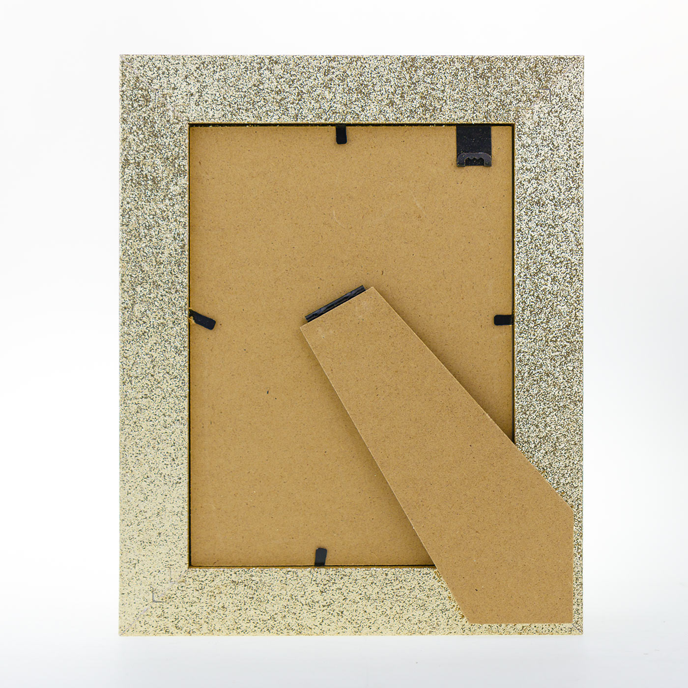Cornice Broadway Gold in legno, colore oro, con effetto glitterato, da tavolo o da parete, disponibile in vari formati, adatta per casa e ufficio. Cornice in legno MISURA FOTO (cm) 13x18 COLORE Oro SPESSORE CORNICE (cm) 1,5 MISURA ESTERNA (cm) 18,8 x 23,8 LARGHEZZA ASTA (cm) 3,5 PESO con scatola (gr) 410 ORIENTAMENTO IMMAGINE Verticale / orizzontale UTILIZZO Da tavolo e da parete RETRO Mdf PARTICOLARITA' Con effetto glitterato PACKAGING Cellophan
